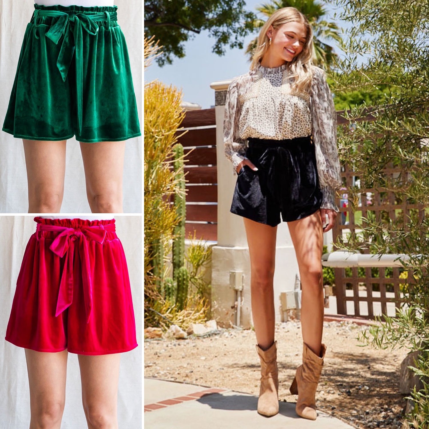 Velvet Belted Paper Bag Shorts- 3 Colors