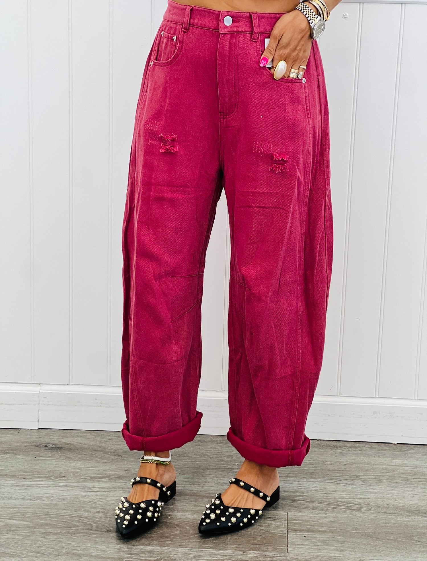Acid Washed Denim Barrel Pants (Reg & Plus)-2 Colors