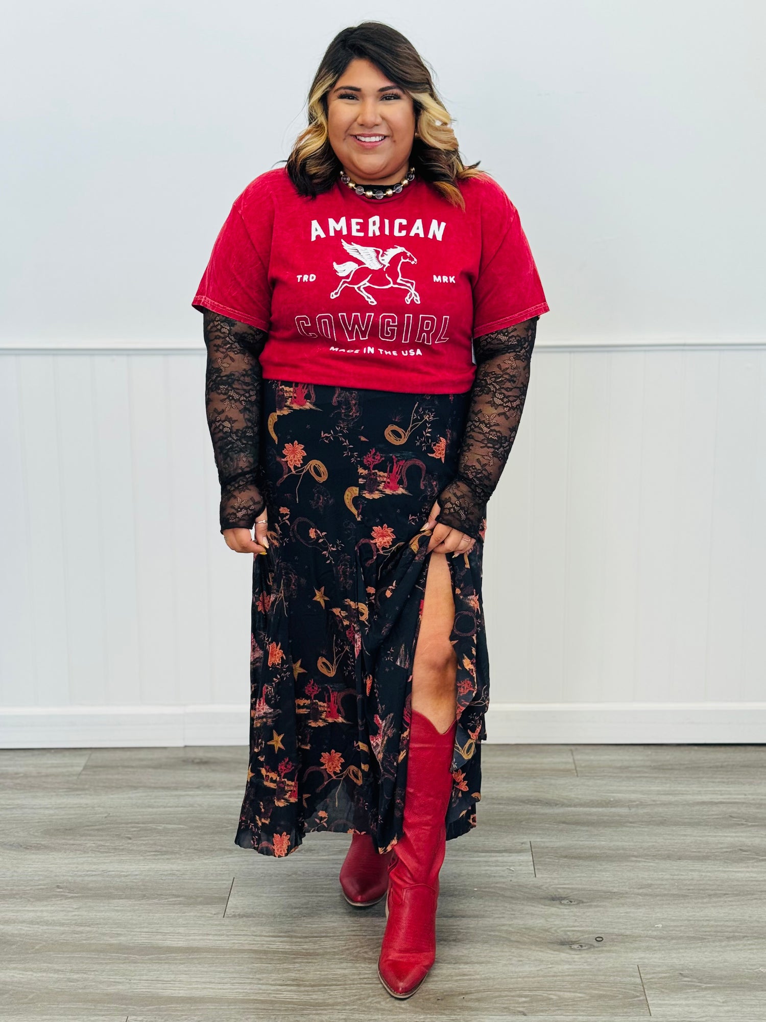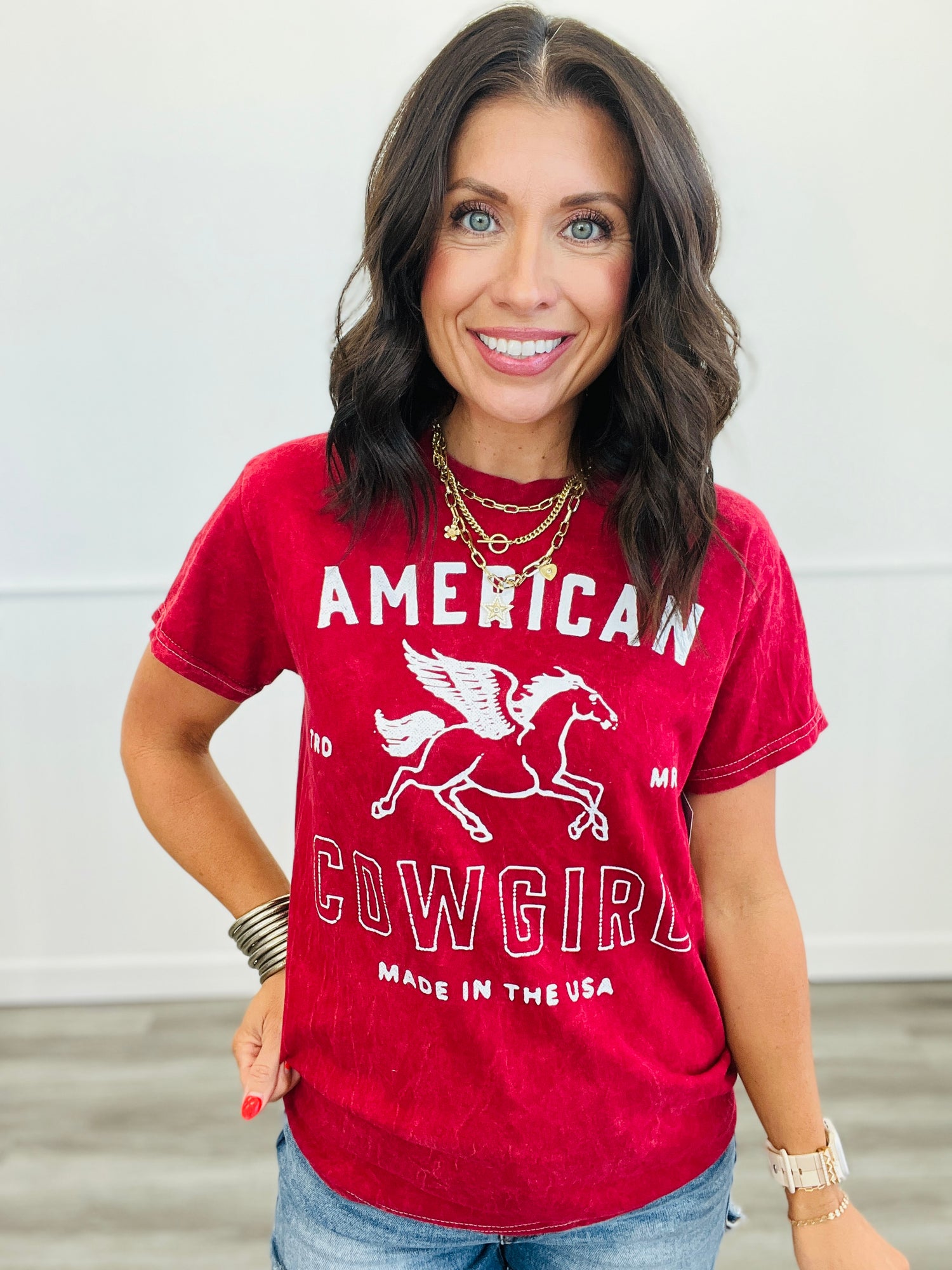 Red American Cowgirl Mineral Washed Tee (Reg. and Plus)