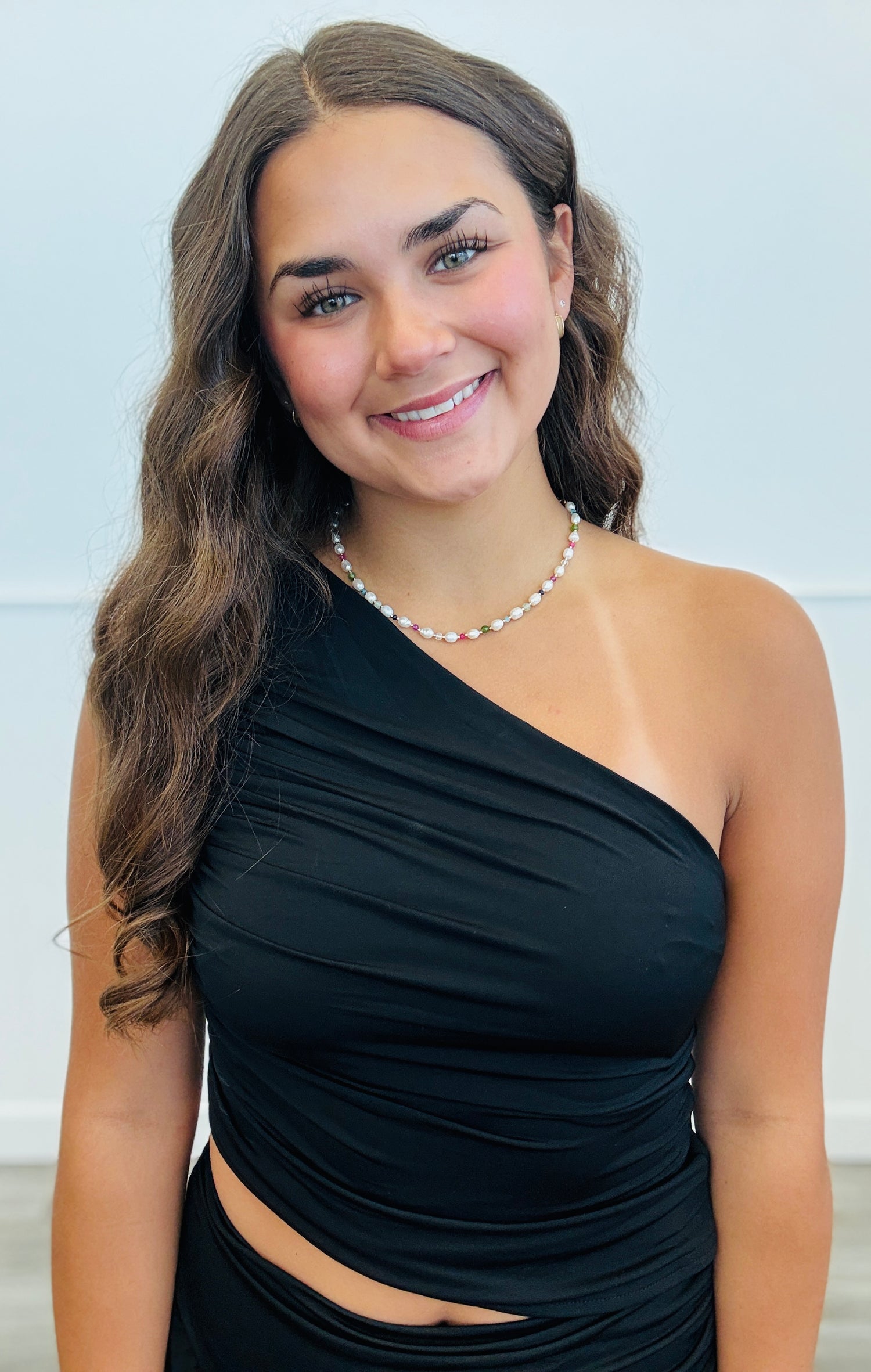 Introducing the fabulous One Shoulder Ruched Knit Top. Features include a stretchy fabrication, ruched asymmetric one shoulder silhouette and true-to-size fit. Perfect match to maxi skirt BOT4816.