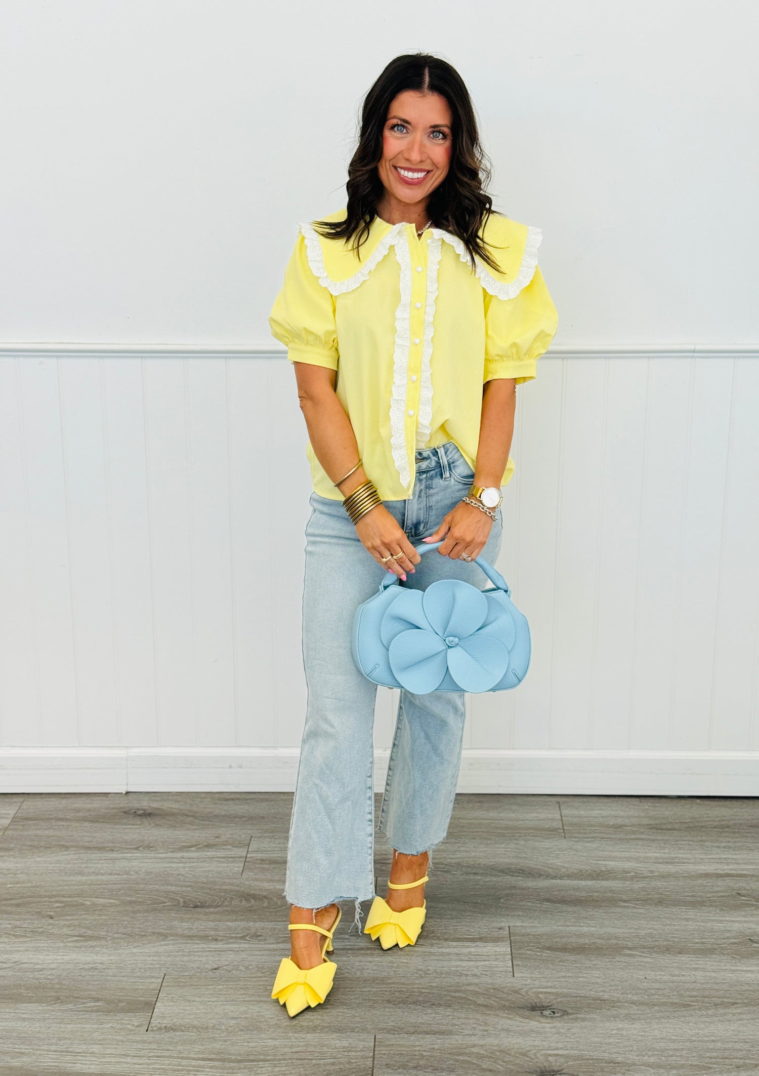 Banana Yellow Peter Pan Collar Button Down Blouse (Reg.)