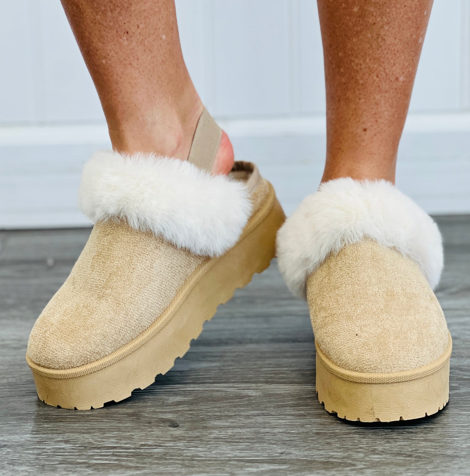 Step out in style with these Beige Slingback Faux Fur Platform Booties! Featuring a cozy faux fur lining and a trendy platform heel, they add a fun, playful twist to any outfit. The slingback design keeps your feet comfy and secure, perfect for dancing through the day or night. Elevate your look with a touch of fluffy flair and bold height!