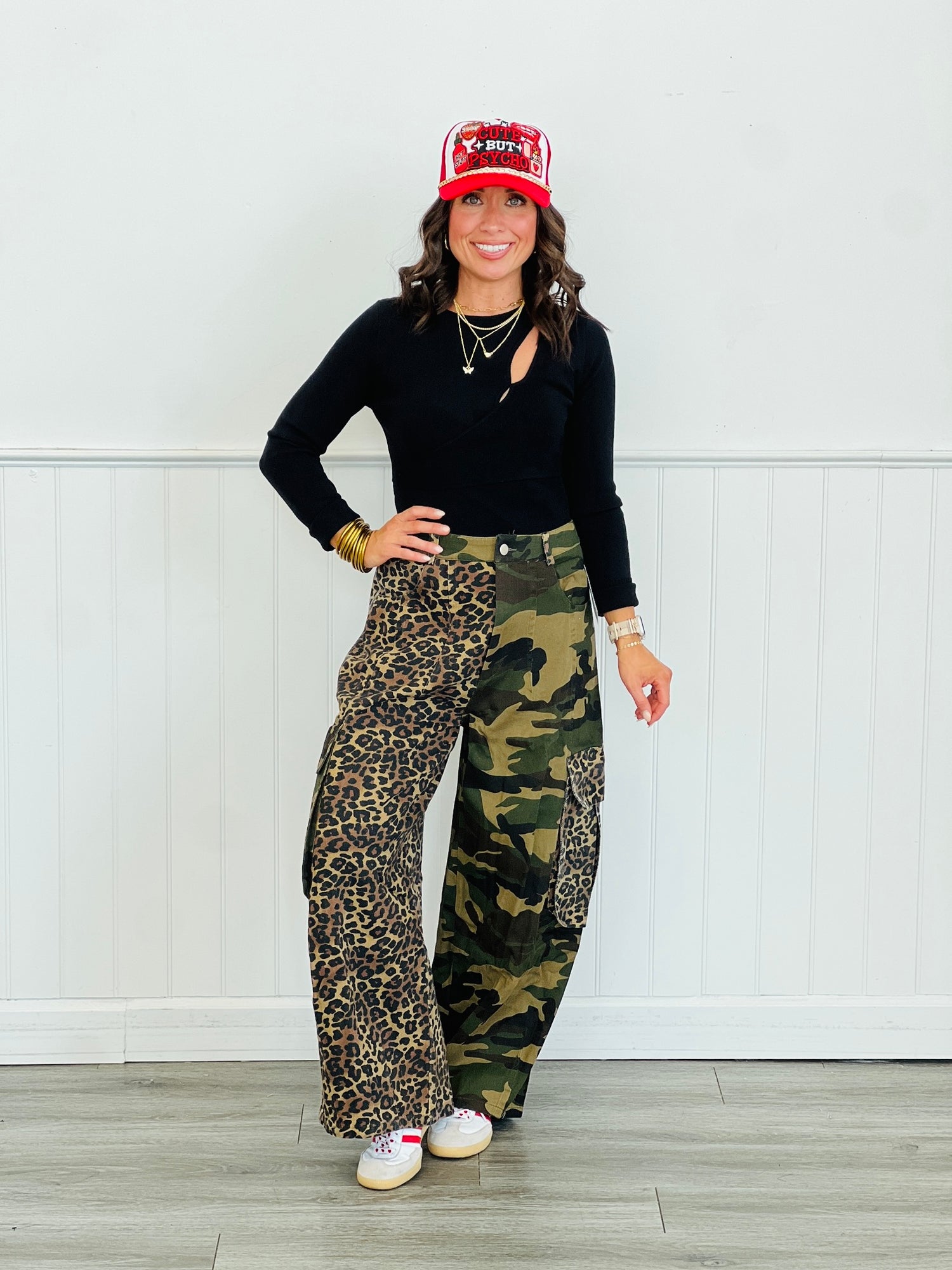 Introducing the edgy Black Cut Out Bodysuit. This sassy top features long fitted sleeves, round neckline, asymmetric cutout design with bold diagonal seam details that wrap around the waist, an intriguing neckline cutout for a modern, edgy vibe and side cutout peeks above the waistband.
