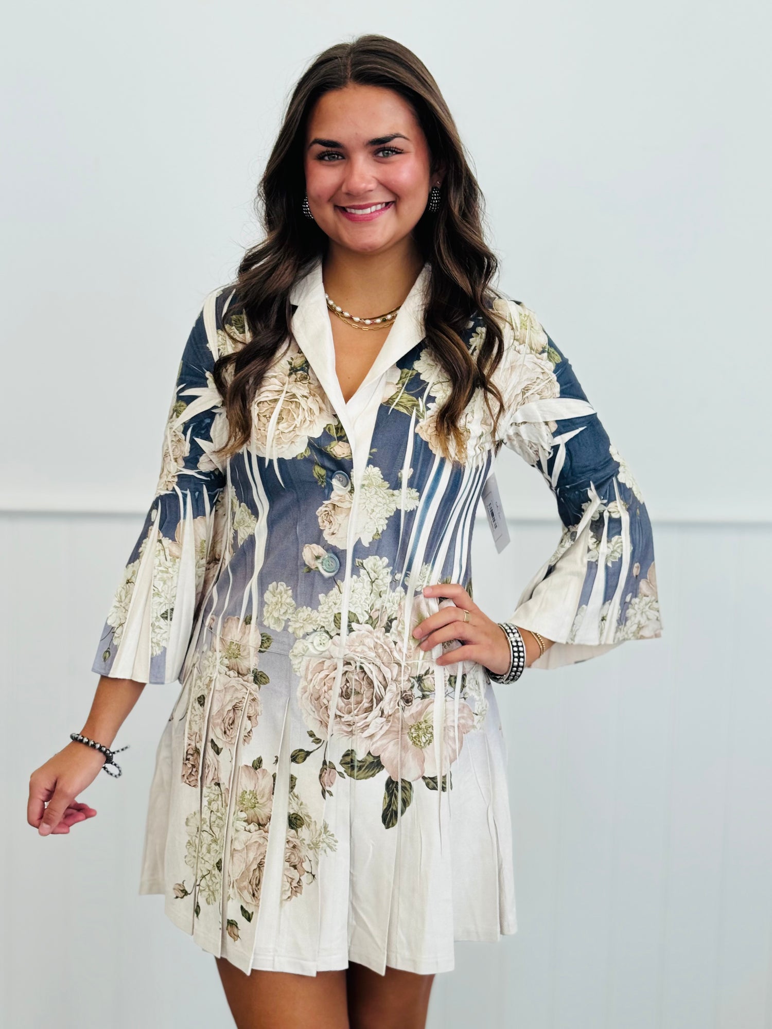 Add a splash of fun to your wardrobe with the Navy Floral Faux Suede Button Up Blazer. Featuring a lively mix of floral prints on soft faux suede, this blazer brings playful charm and cozy style to any look. It’s perfect for those who love to stand out with a wild twist.
