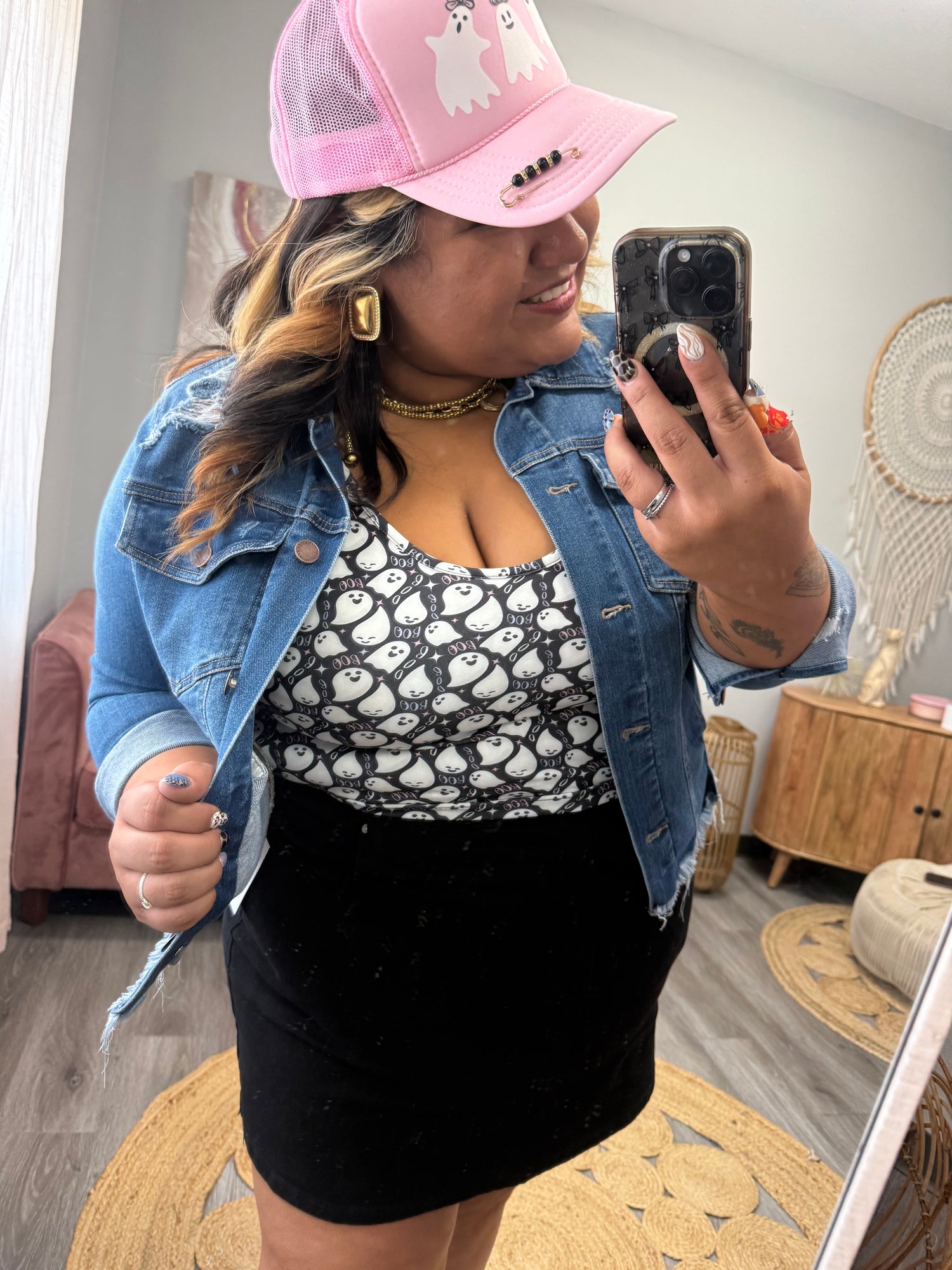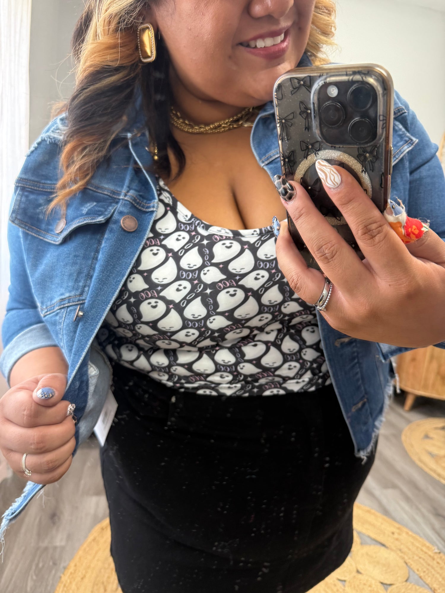 Get ready to haunt the night in style with the Black Ghost Halloween Brami! Crafted from a silky-soft blend of polyester and spandex, this playful brami fits snugly while letting you move freely. With built-in bra pads for light support, it keeps you comfy without the bulk. Perfect for spooky season, it’s your go-to piece for a festive, fun look that feels as good as it looks.