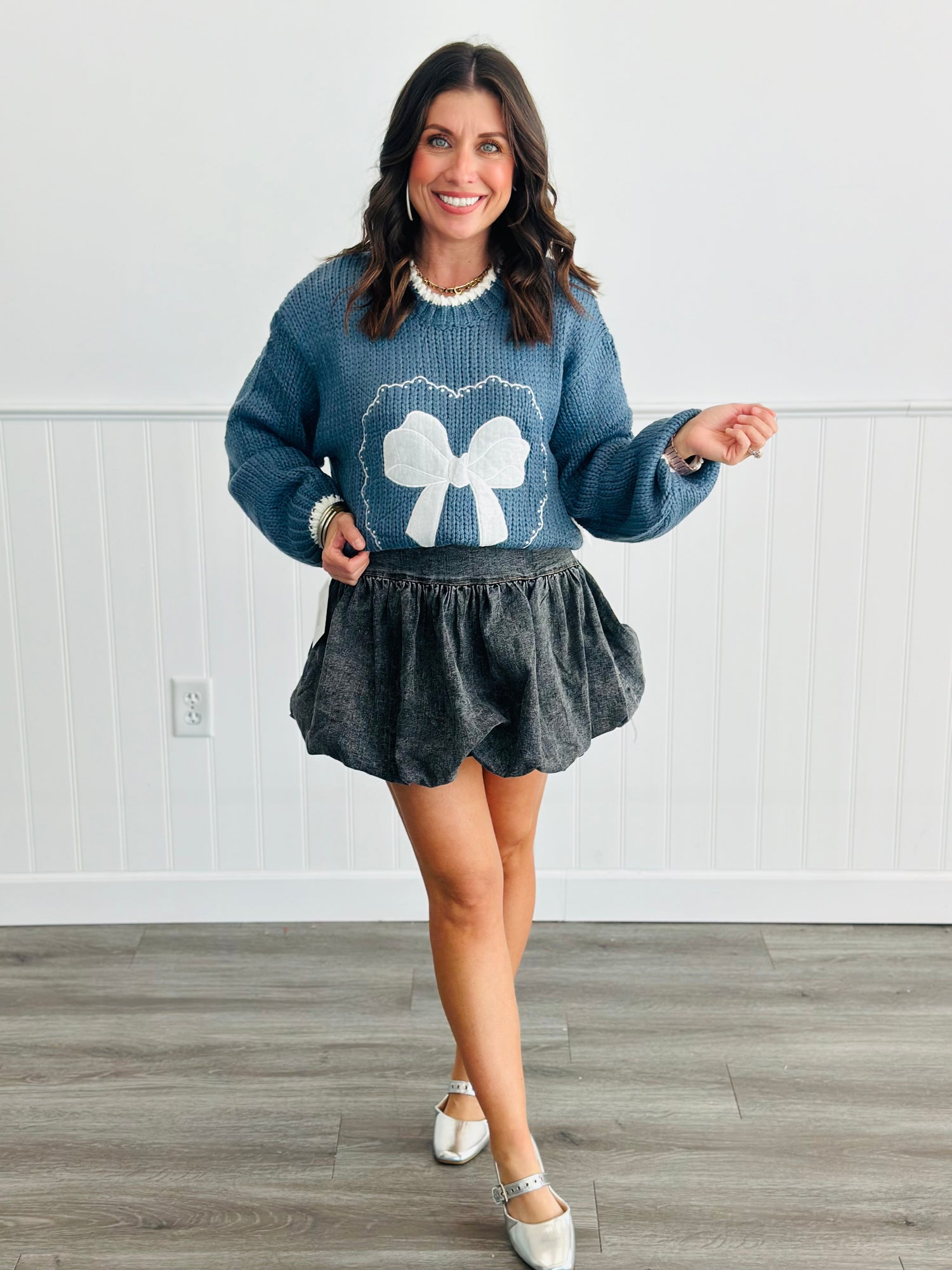 Get ready to rock this Black Mineral Washed Denim Bubble Mini Skirt! This high-waisted skirt features a unique mineral wash and bubbly silhouette that adds a playful touch to your look. Perfect for a fun night out, this skirt will have you turning heads and feeling confident. (And we know you'll look fabulous, darling!)