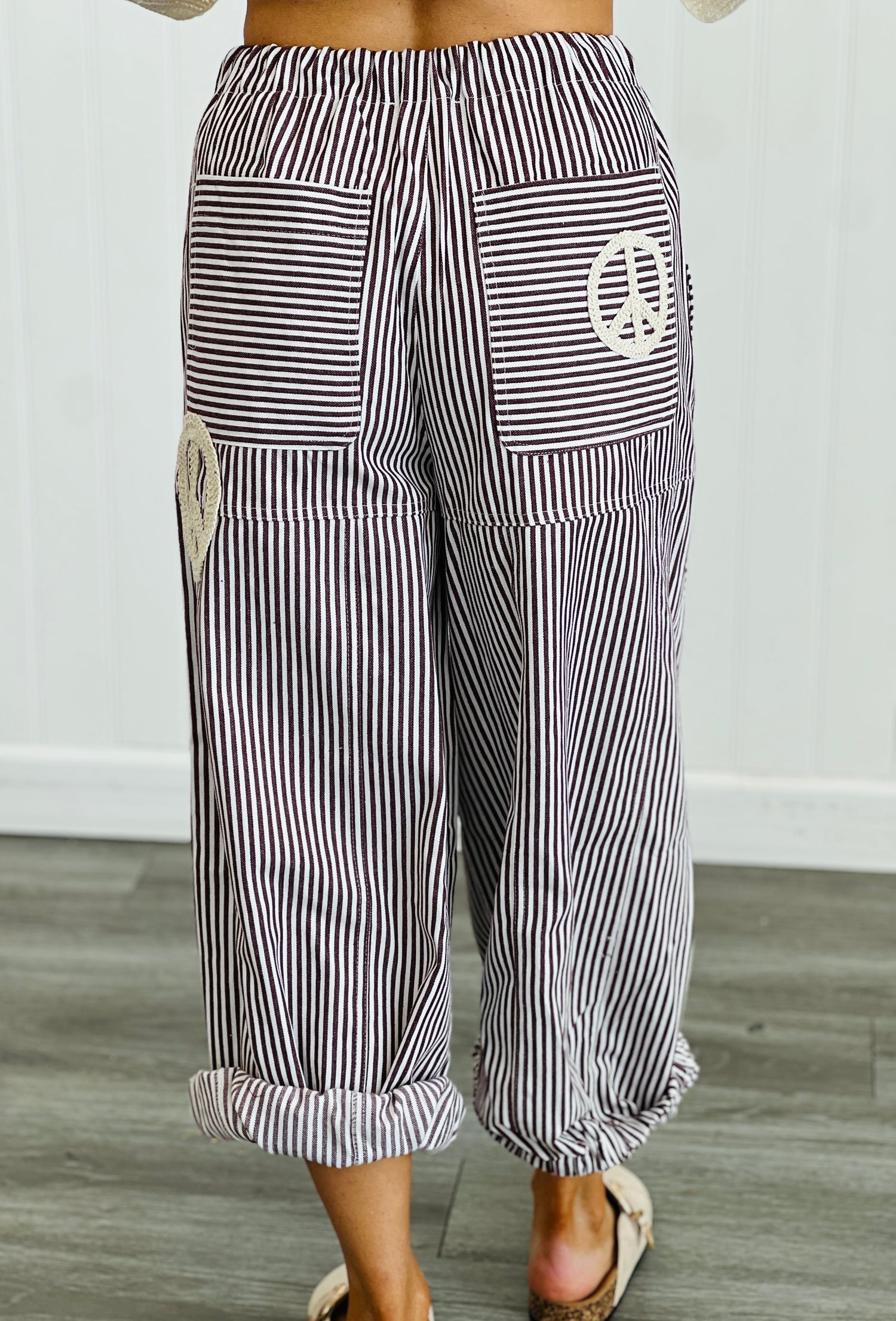 Burgundy Peace Sign Pinstripe Palazzo Pants (Reg. and Plus)