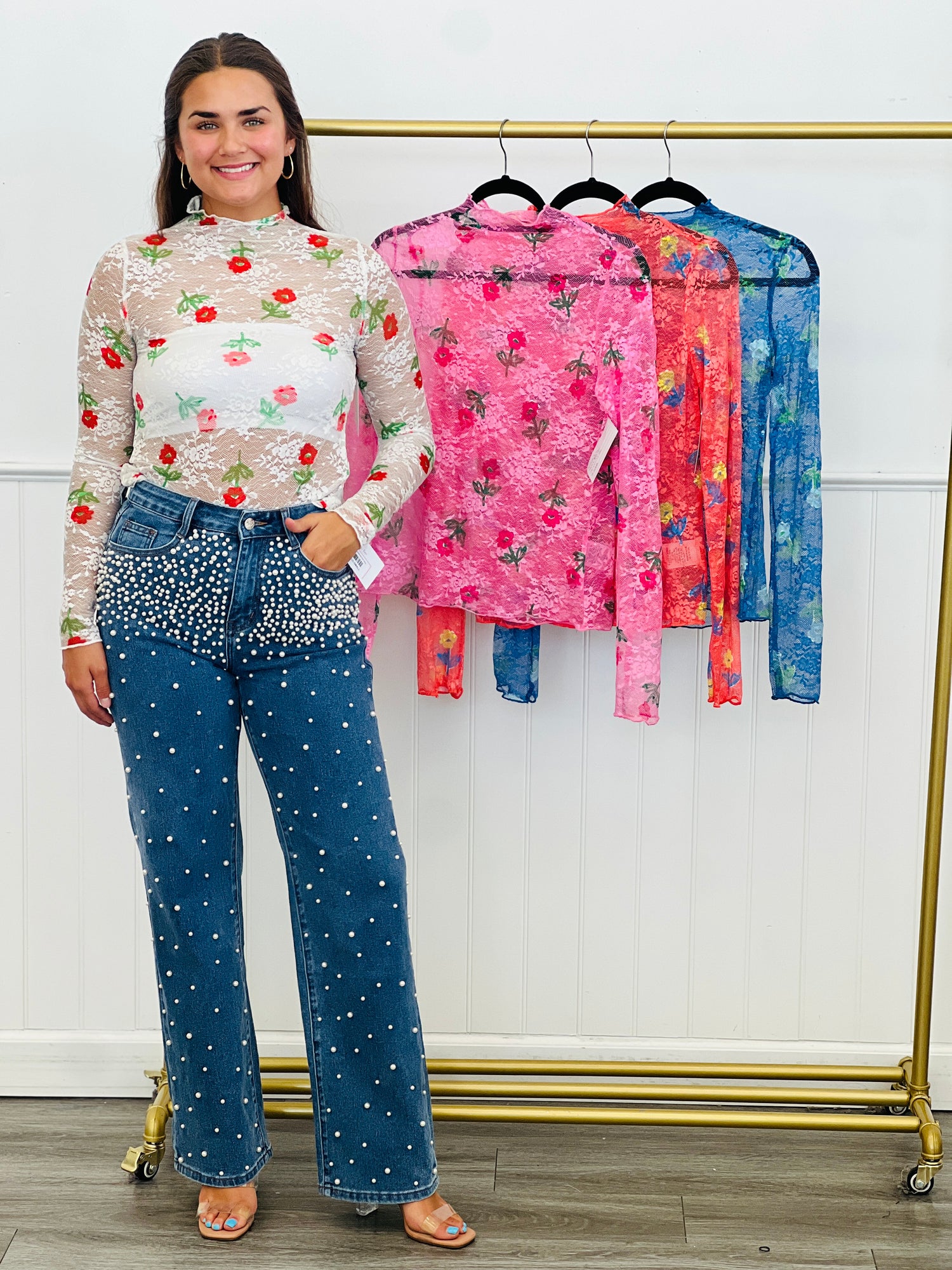 Bloom Mesh Floral Top (Reg.)-4 Colors