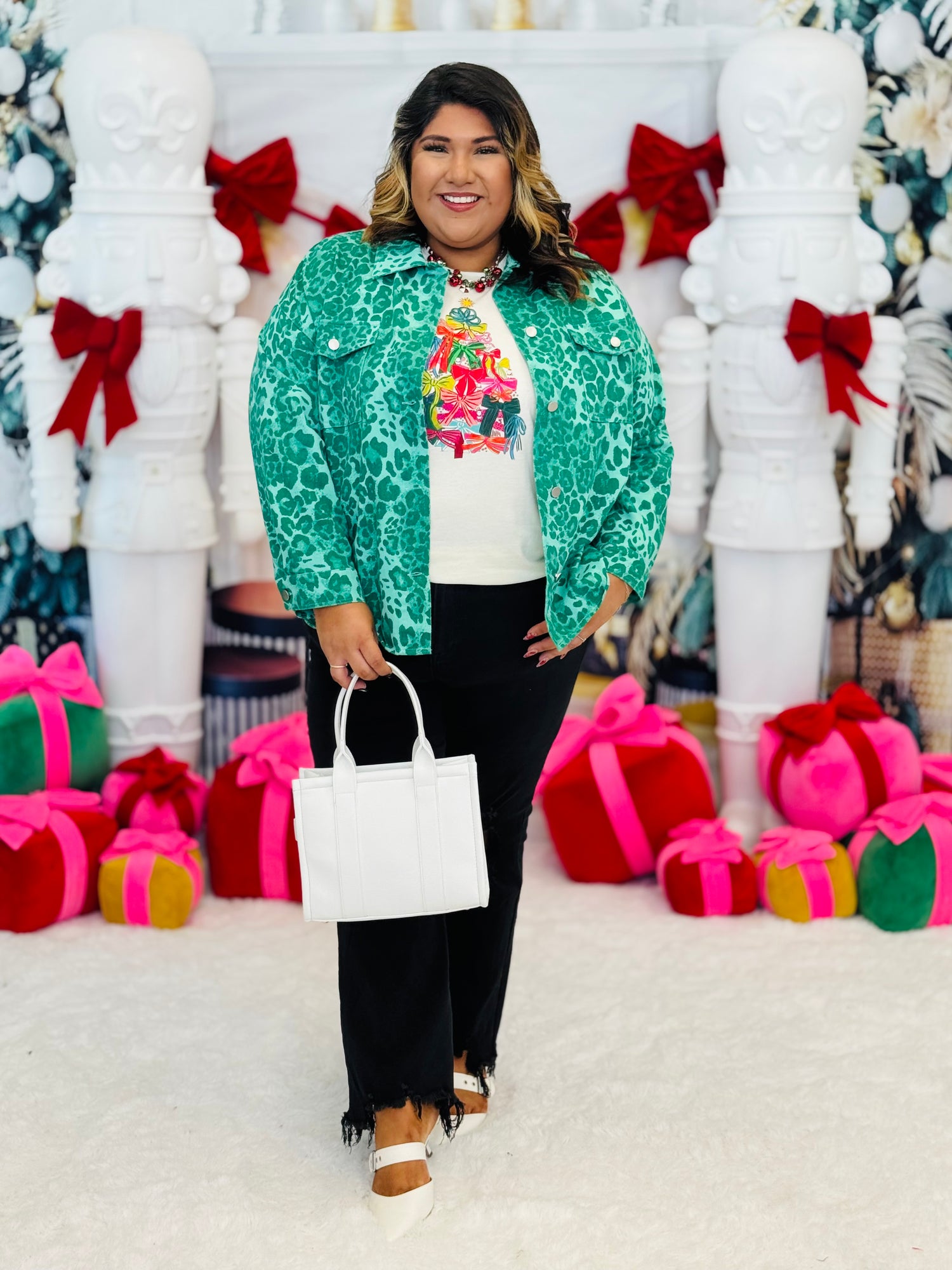 Celebrate the festive season with this ivory crewneck tee featuring a charming Christmas tree made entirely of bows! Soft, comfortable, and perfect for holiday gatherings, this playful graphic tee adds a cheerful touch to your wardrobe. Available in regular and plus sizes, it’s designed to spread holiday joy with every wear.