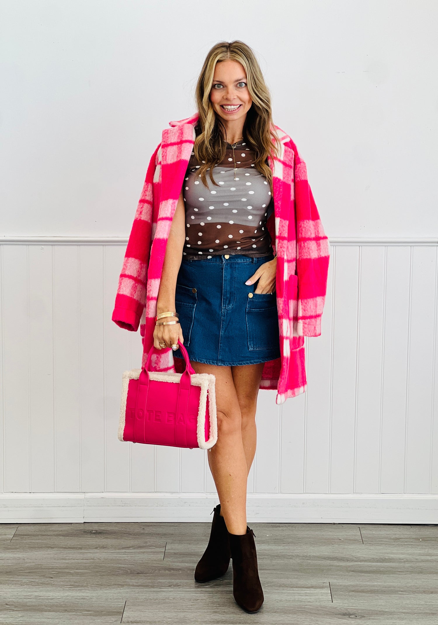 Brown Polka Dot Mesh Blouse (Reg & Plus)