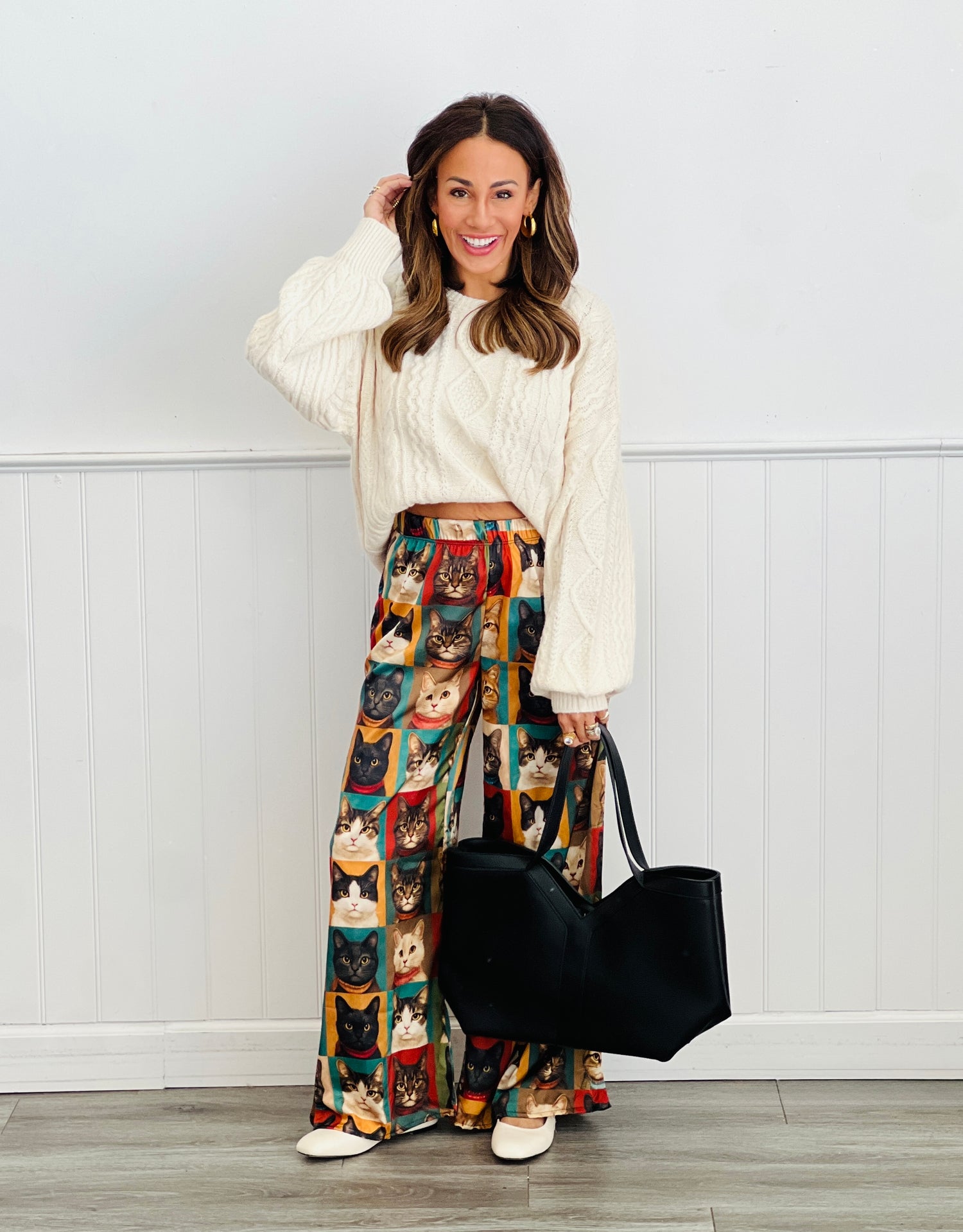 Cat Portrait Wide Leg Pants (Reg & Plus)