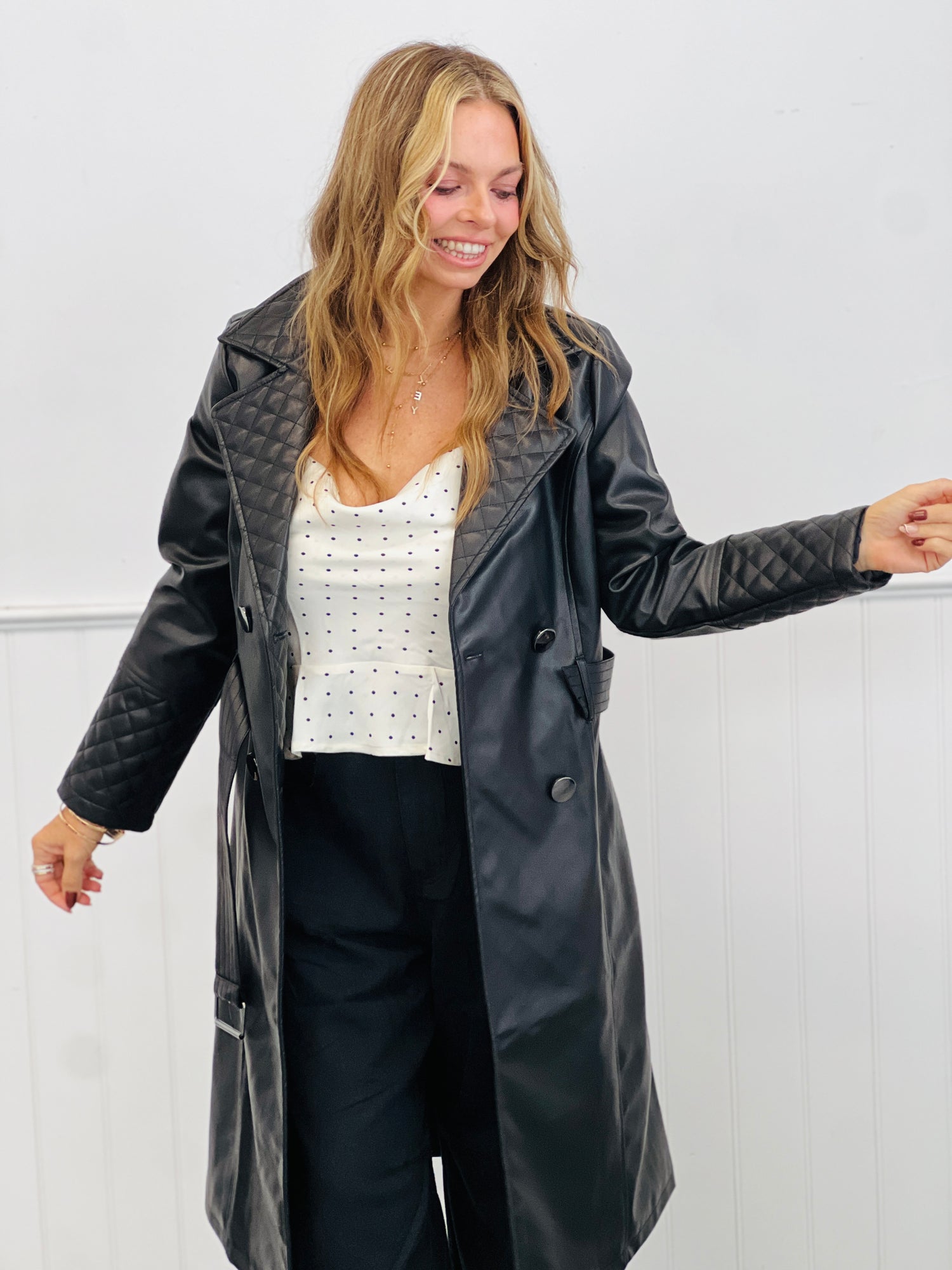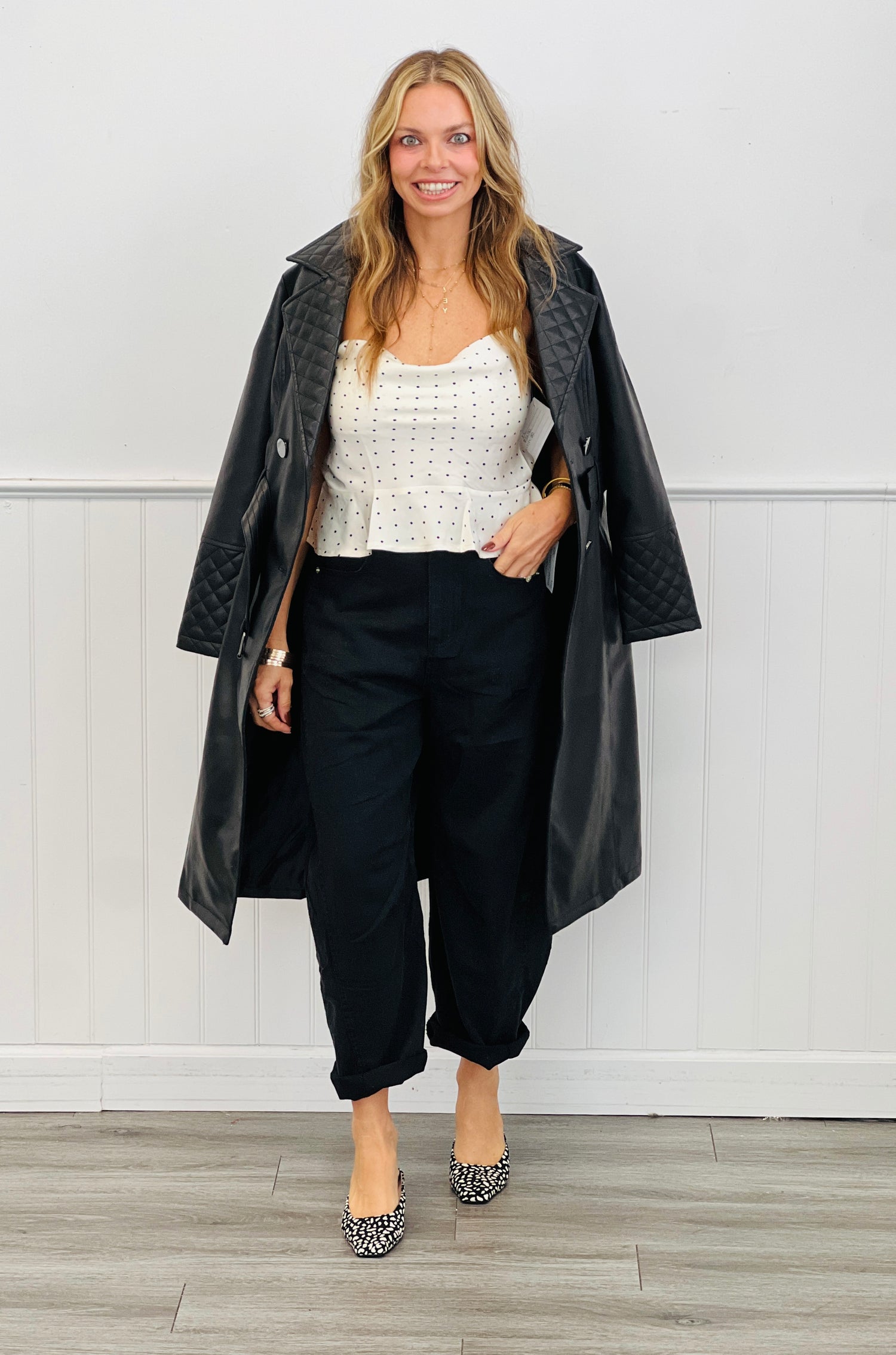 Elevate your cami collection with this super cute Polka Dot Peplum Cami Top. Features include a draped neckline, wide set adjustable spaghetti straps, low-cut back with double tie closure and peplum hemline.