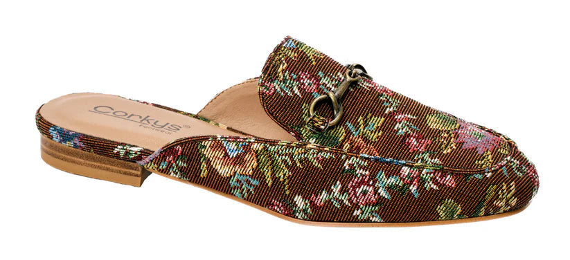 Step into luxury with Corky's Rust Floral Mules. Featuring a matte gold chain accent, these loafers add an elegant touch to any outfit. With their ultimate comfort and versatile style, they're a must-have for any fashionista!