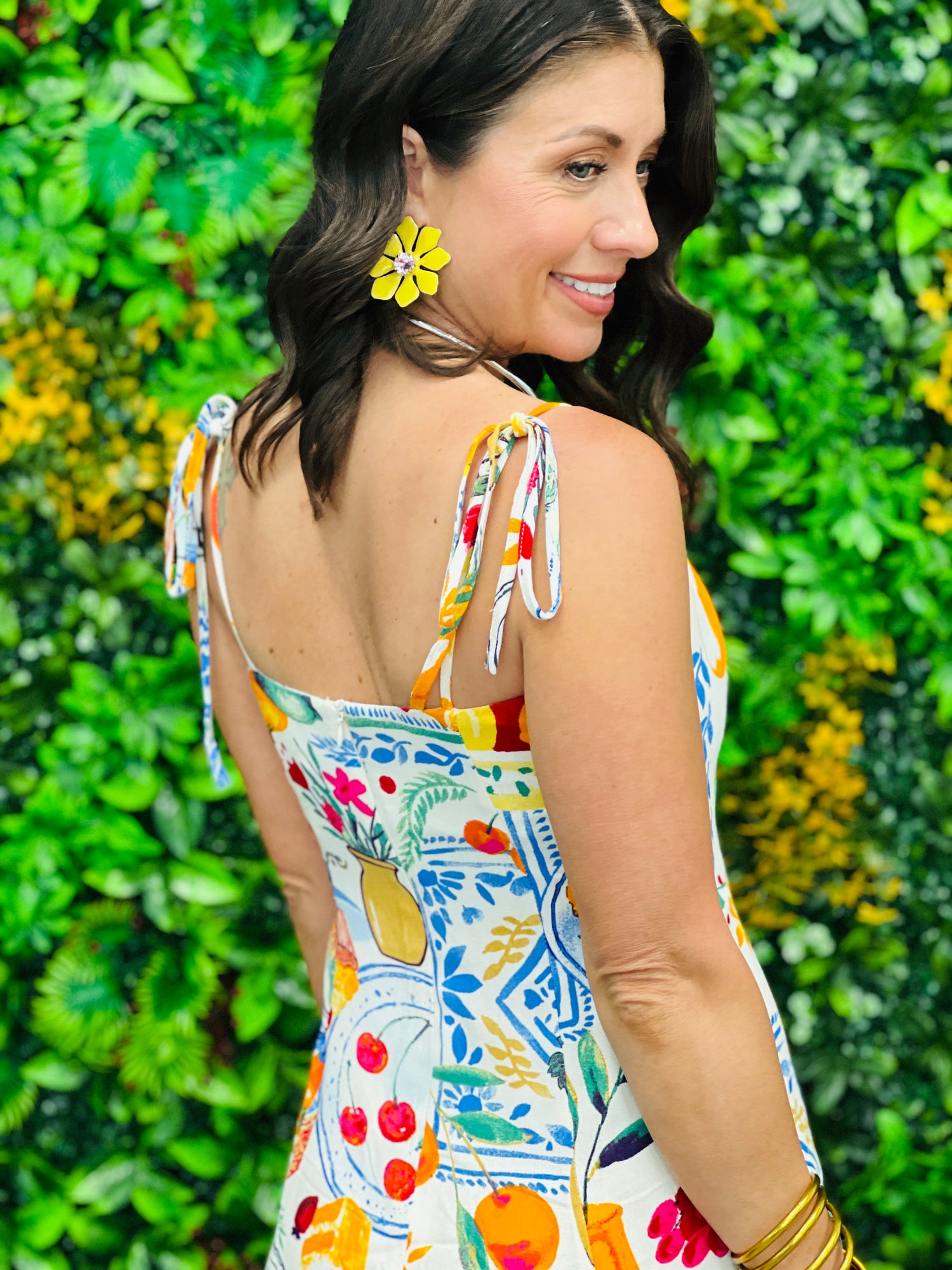 Cream Multi Fruit Print Self Tie Midi Dress (Reg.)