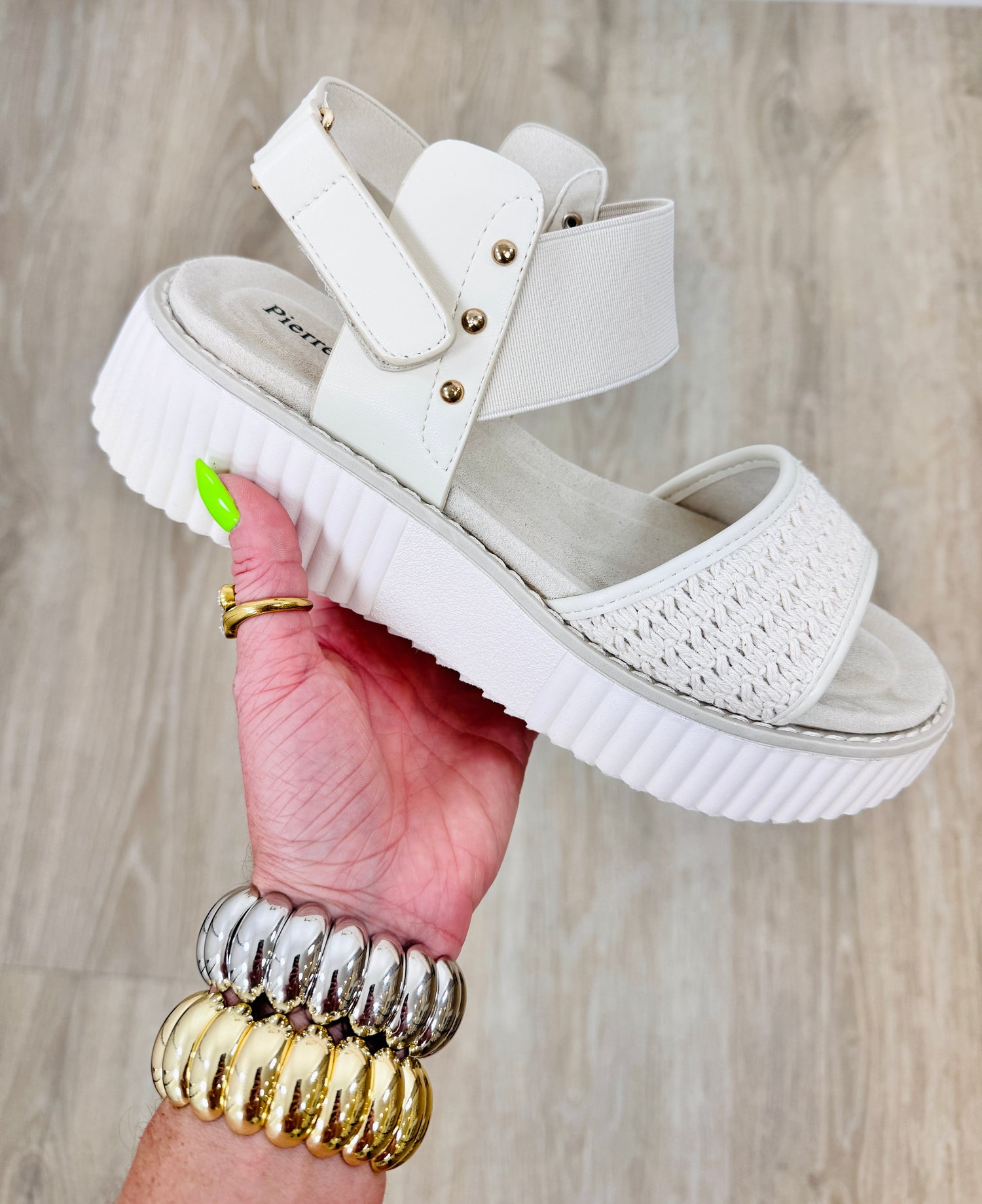 Get ready to step into sunshine with these Cream Platform Sandals! With a Velcro closure for easy on and off, and stylish stud detailing, these sandals are perfect for any sunny day. Whether you're hitting the beach or strolling around town, these sandals offer both style and functionality. It's time to soak up some rays in these must-have sandals!