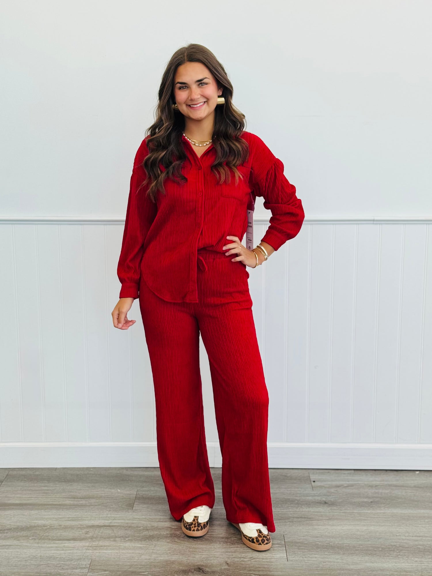 Crinkled Plisse Shirt & Pants Set (Reg.)-3 Colors