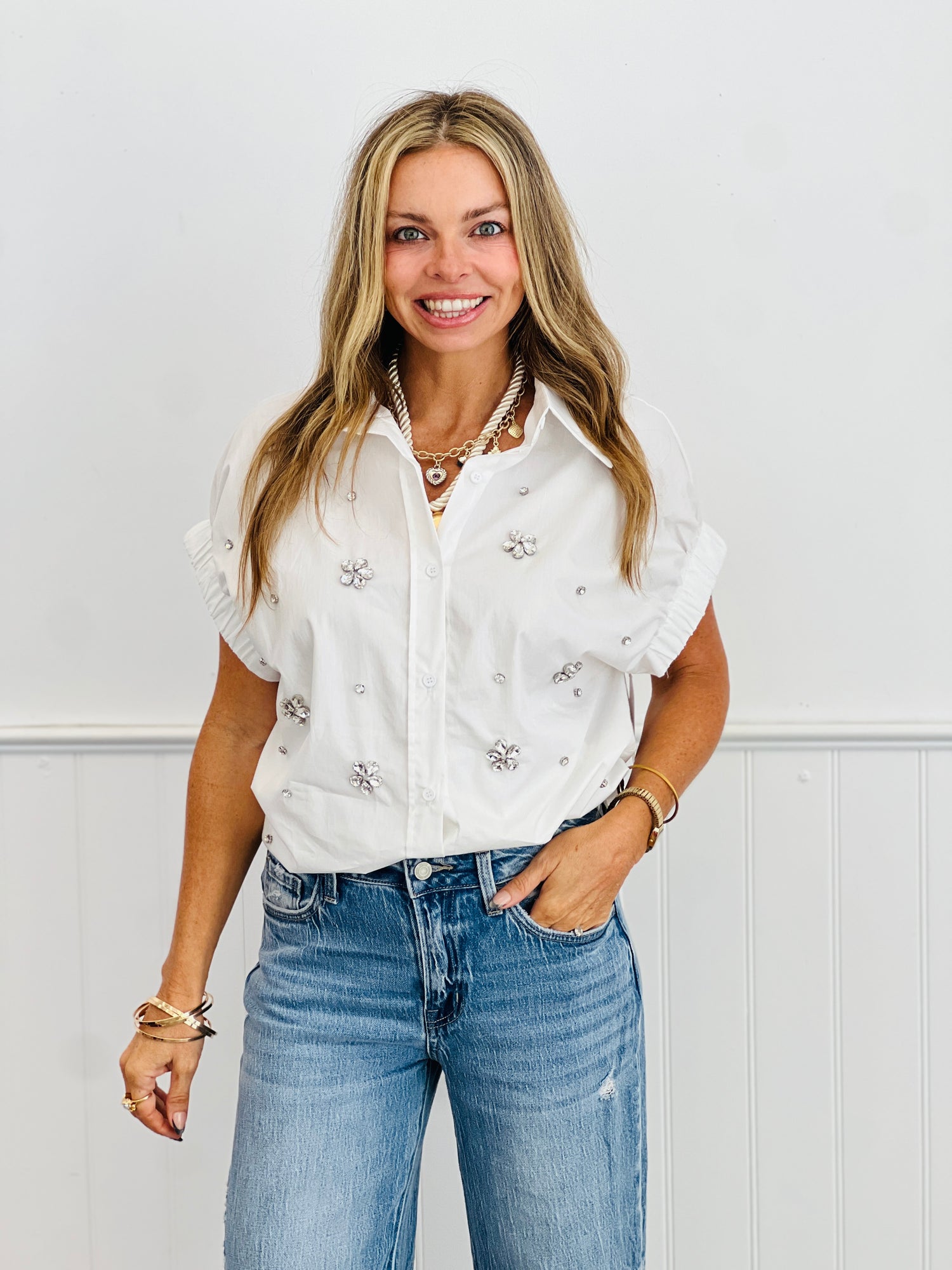 Crystal Studded Button Up Blouse (Reg.) - 3 Colors