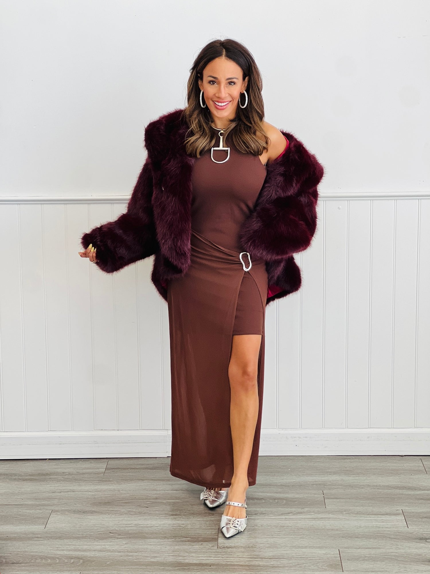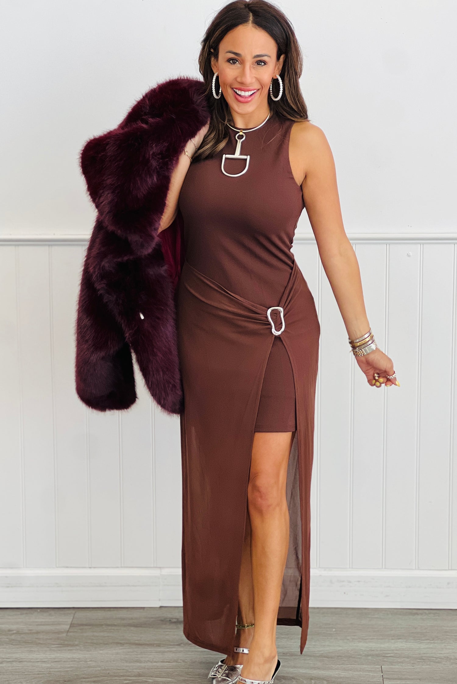 Dark Brown Side Buckle Maxi Dress (Reg.)