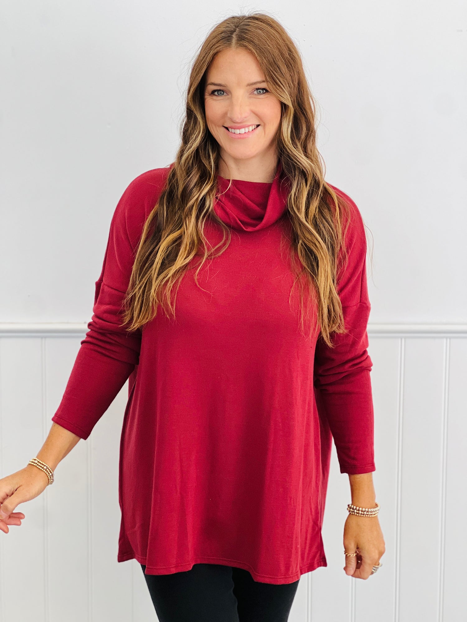 Dear Scarlett Cowl Me Back Tunic Top (Reg. and Plus) - 5 Colors