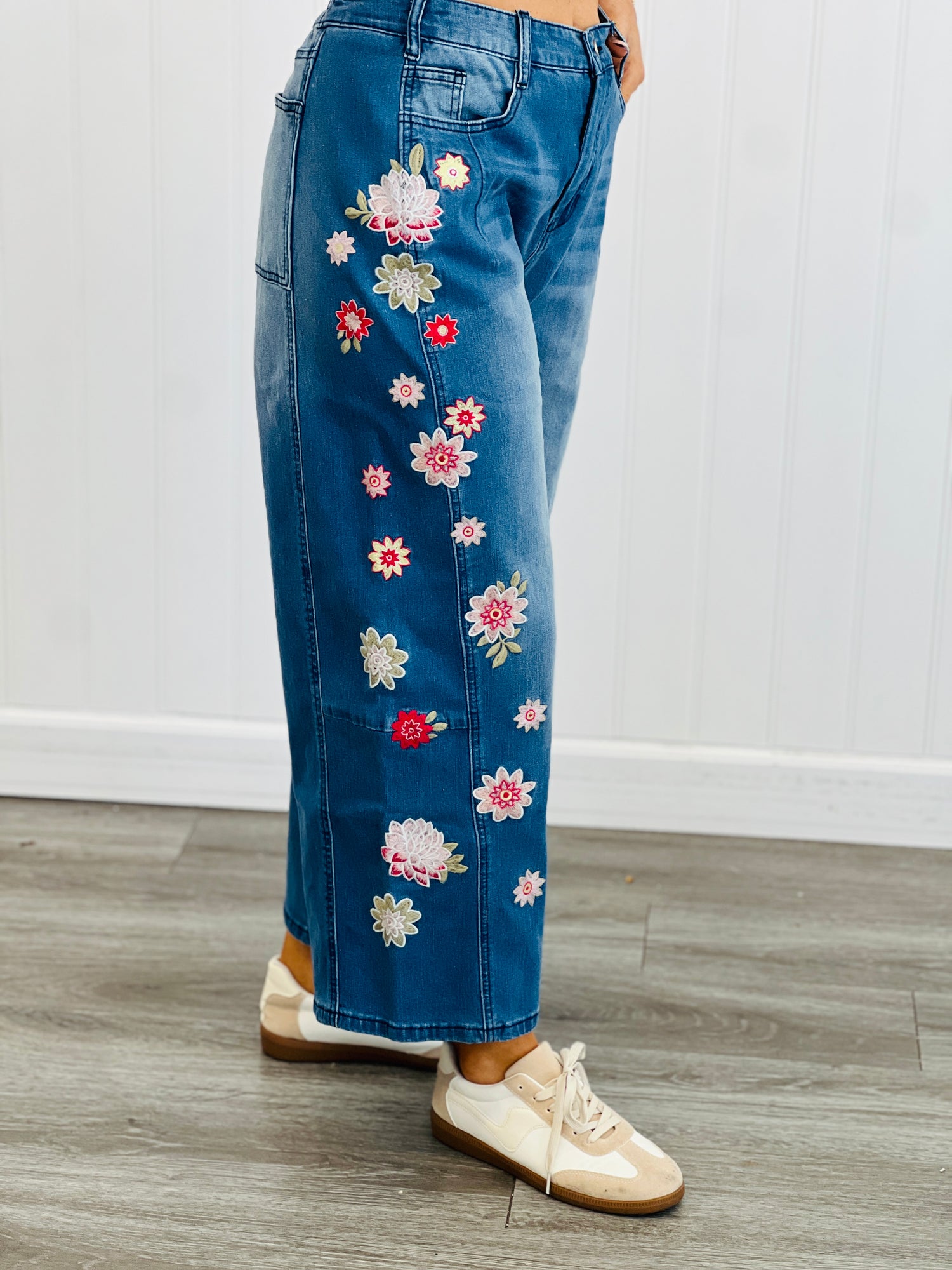 Step into easygoing style with these Denim Floral Embroidered Pants! Featuring a relaxed boyfriend fit and mid-rise waist with an elastic back for comfy, all-day wear. The stretchy, garment-washed denim adds a soft touch, while playful flower embroidery graces the sides for a splash of fun. Finished with a button and zipper front closure, these pants bring a charming twist to your favorite casual looks.