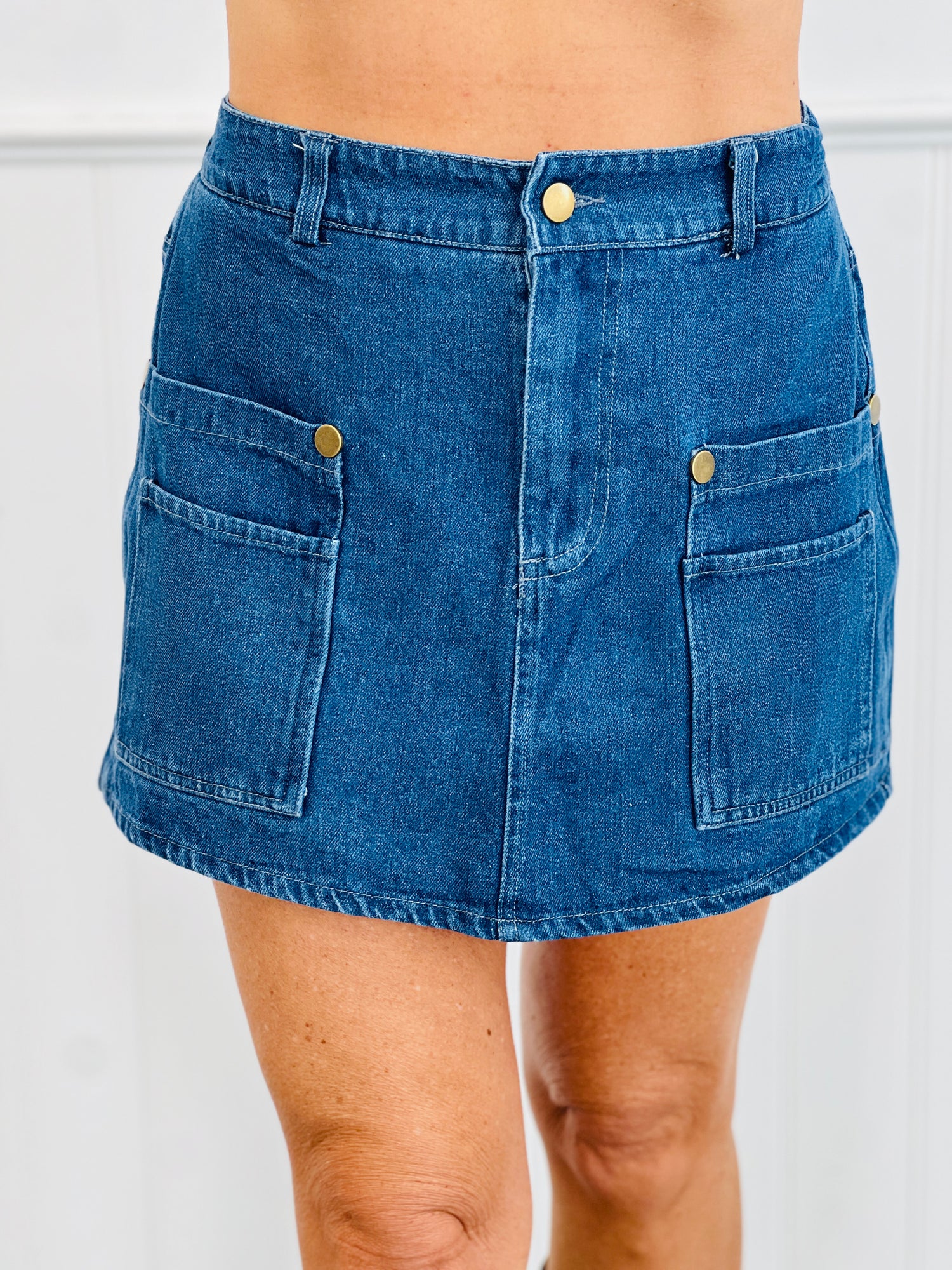 This playful denim utility mini skort blends chic style with comfy ease. Featuring front patch pockets and a stretchy back waistband, it’s perfect for keeping essentials handy while moving freely. Dress it up with boots or keep it casual with sandals—this versatile piece promises all-season fun and effortless cool.