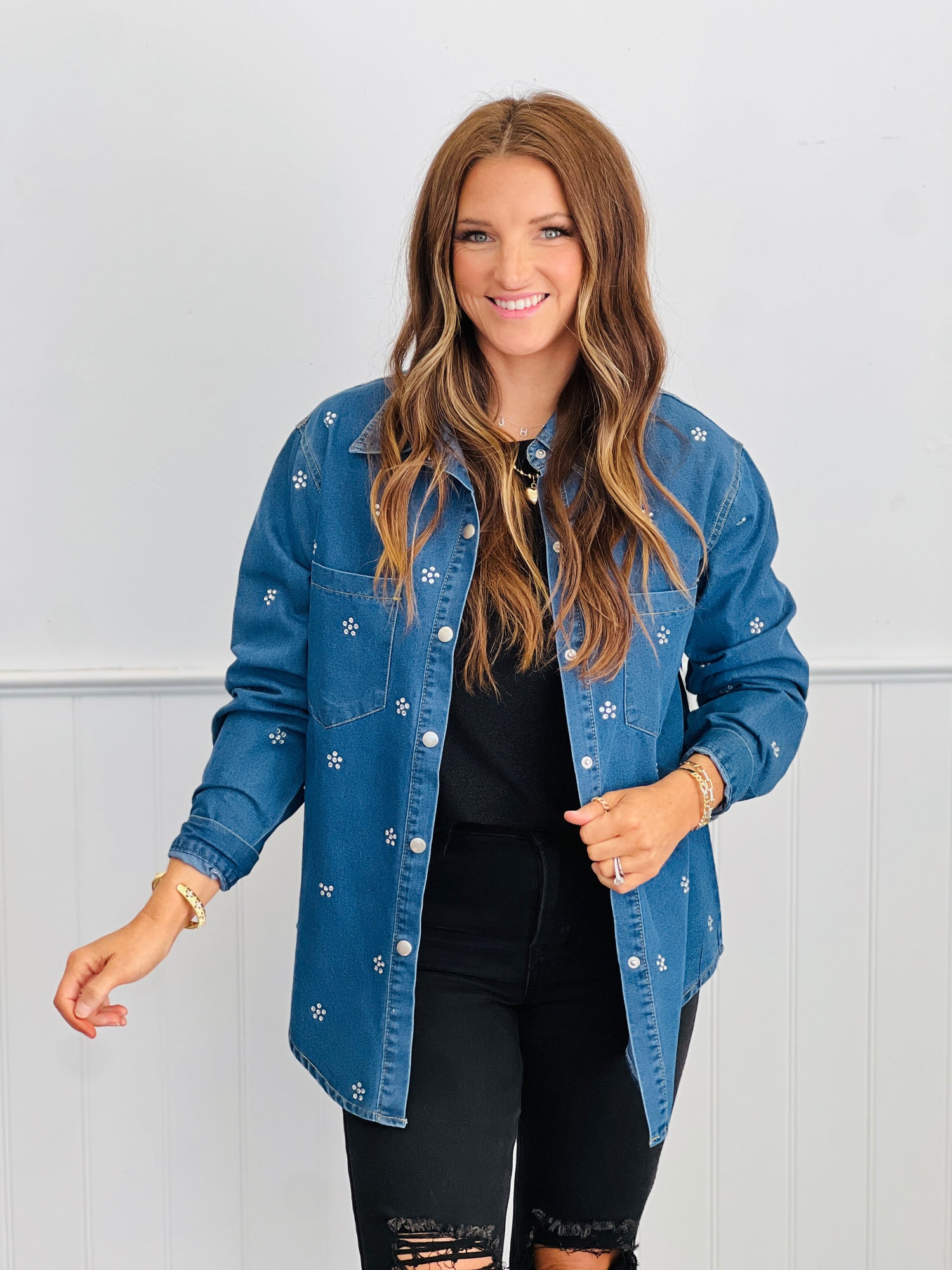 Dk Denim Flower Rhinestones Button Down Top (Reg.)
