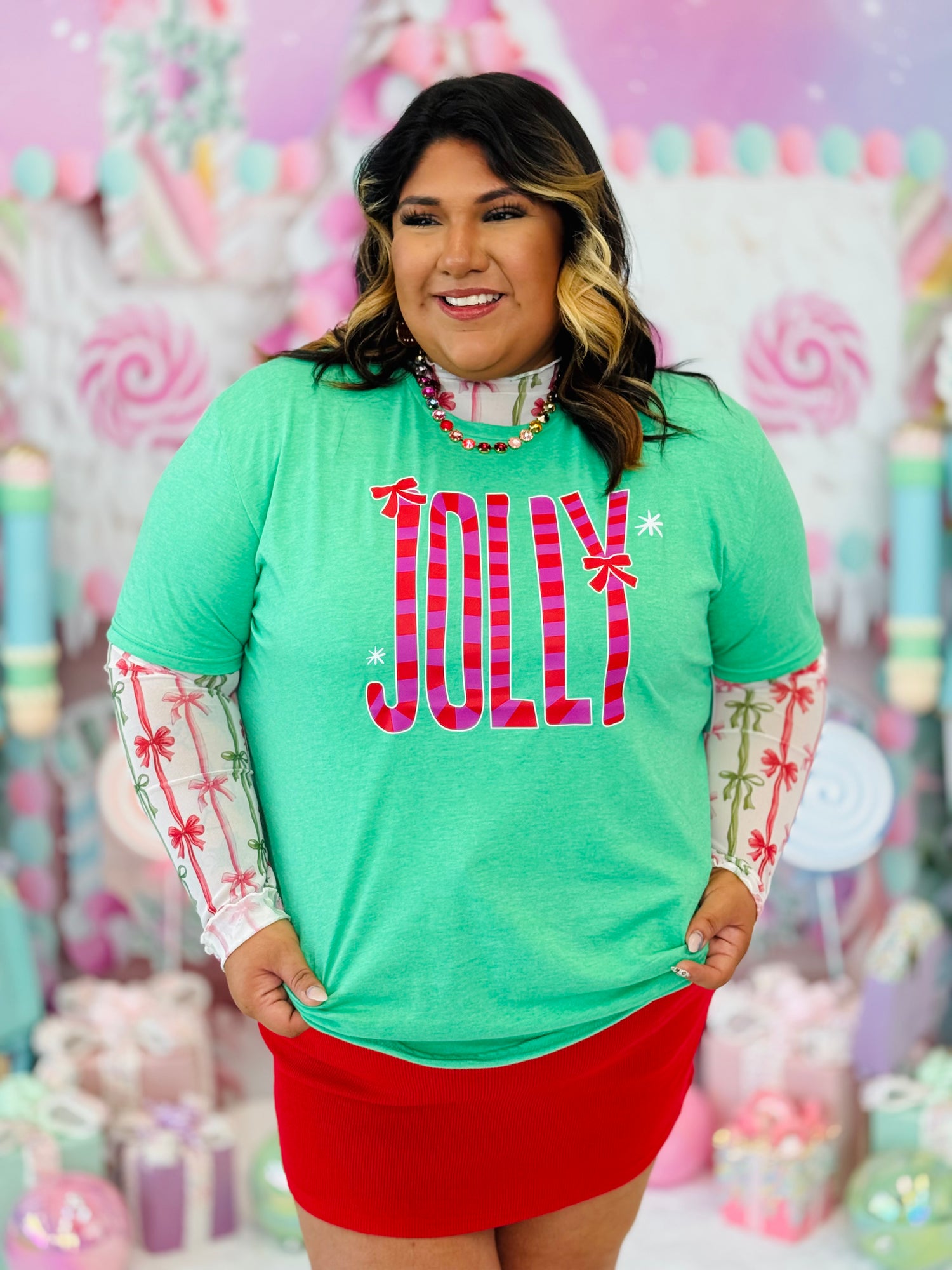 Celebrate the season in style with our Green Holly Jolly Graphic Tee! Featuring festive peppermint stripes, charming bows, and a hint of holiday sparkle, this vibrant green crewneck brings cheerful vibes wherever you go. Perfect for decking the halls, wrapping gifts, or cozying up with cocoa, it’s your go-to tee for feeling merry and bright all season long.