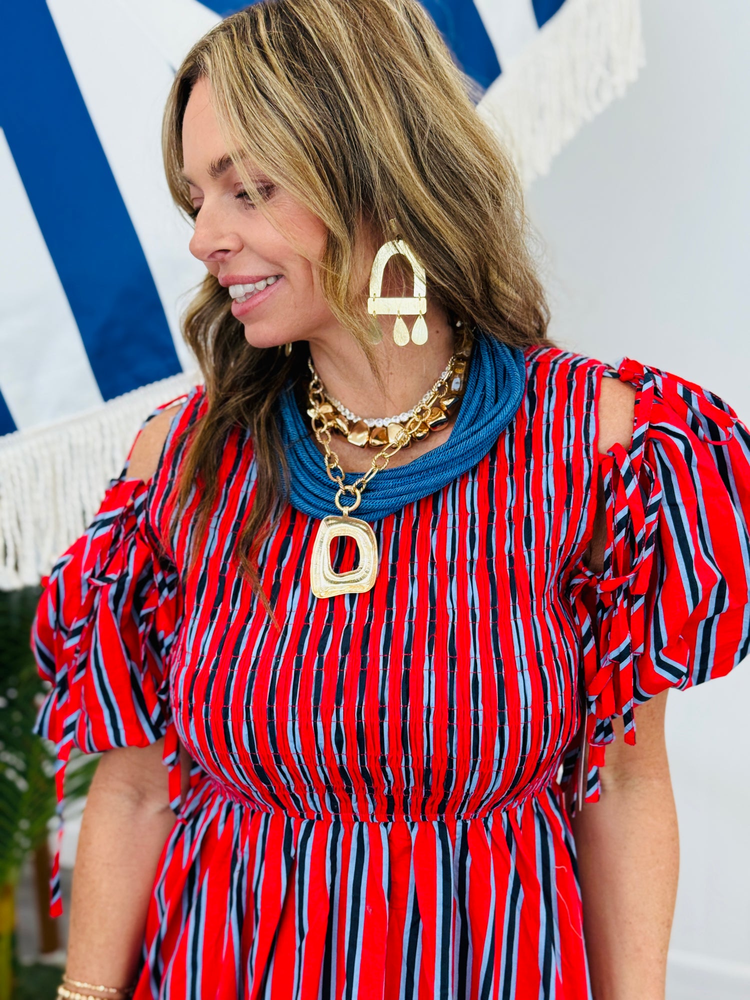 Red Mix Striped Smocked Midi Dress (Reg.)