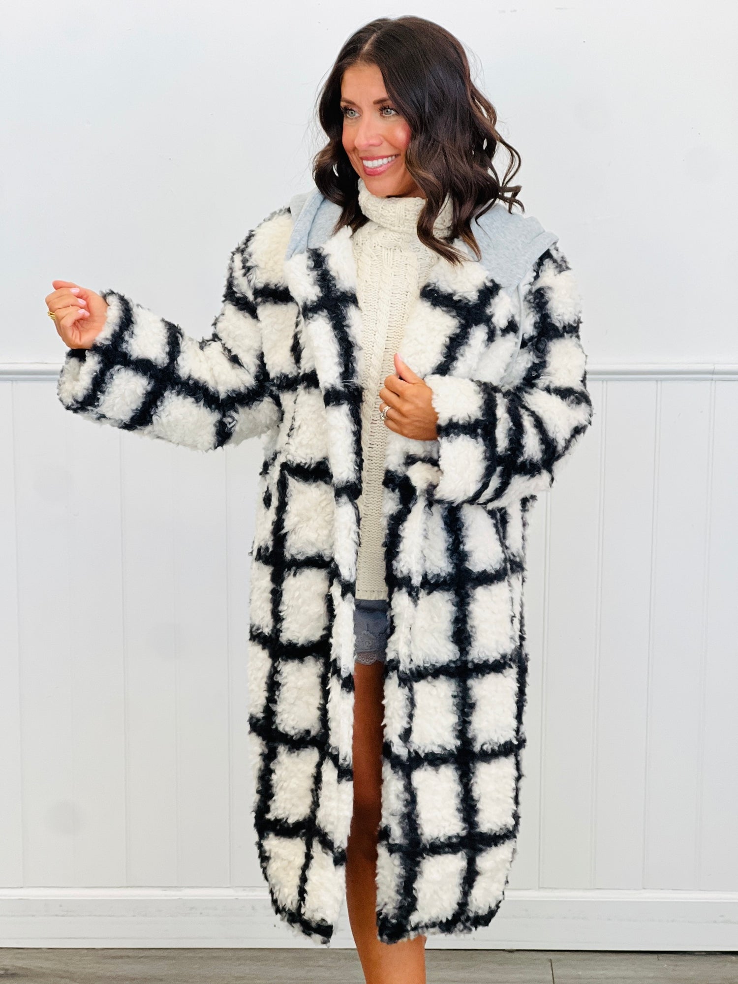 Ivory/Black Plaid Longline Hoodie Coat (Reg.)