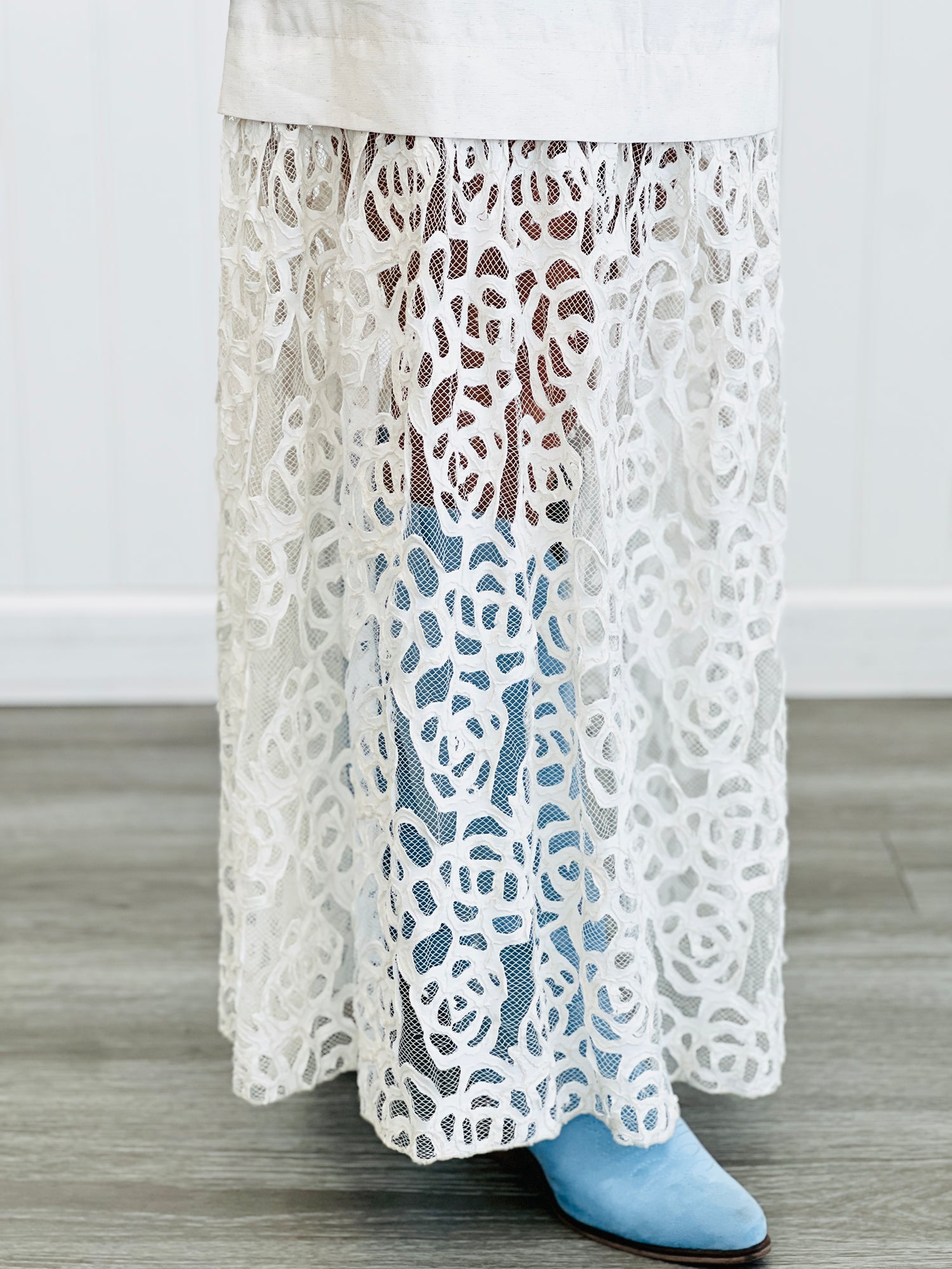 Ivory Rosette Lace Midi Cocktail Dress (Reg.)