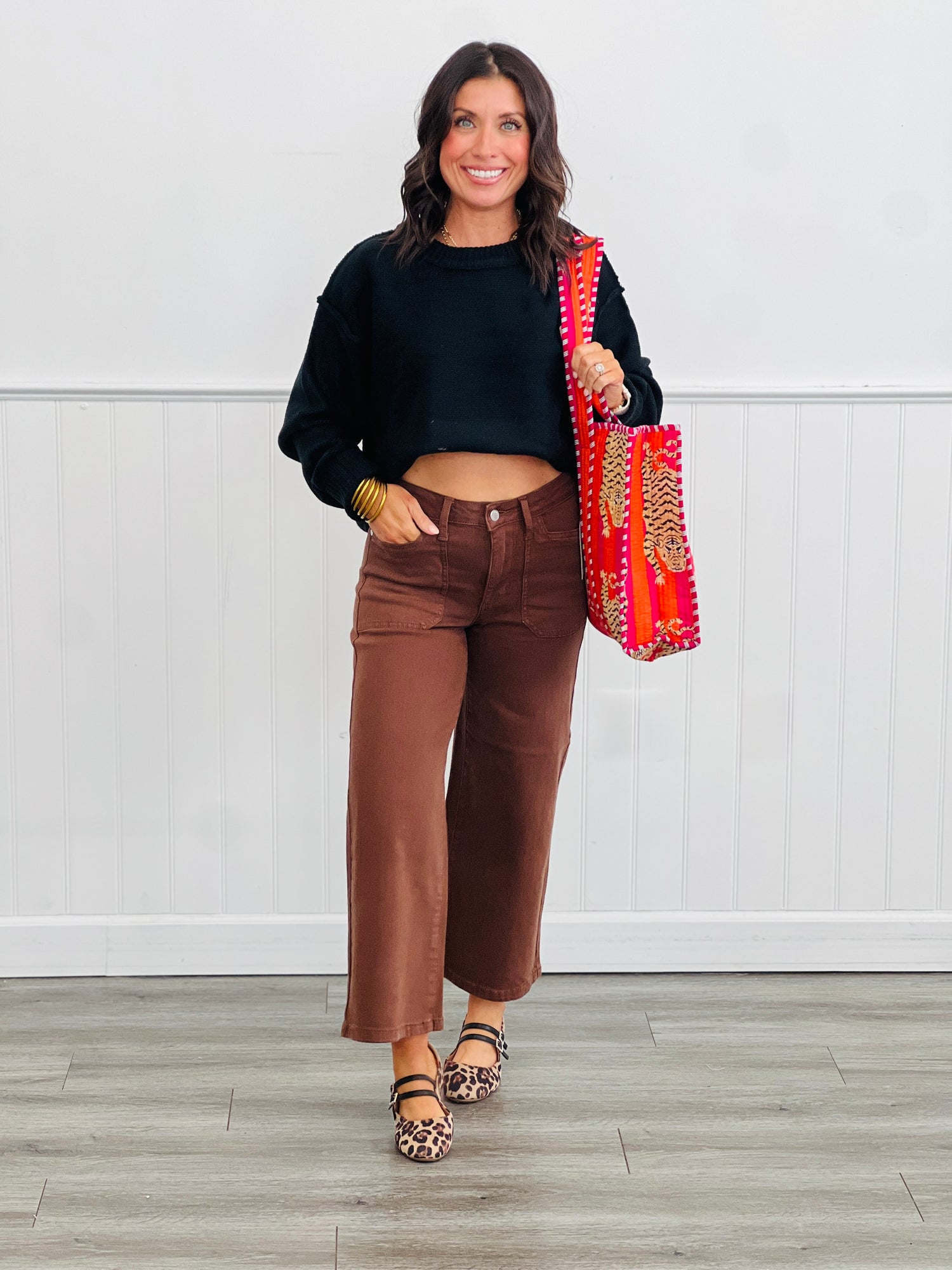 Step into cozy days with Judy Blue Autumn Edge Wide Leg Jeans. These mid-rise, wide crop jeans feature garment-dyed utility pockets for a touch of edge and effortless style. Perfect for lounging or layering, they bring a playful mix of comfort and casual cool to your wardrobe. Whether you choose regular or plus, enjoy a flattering fit that’s ready for all your adventures.