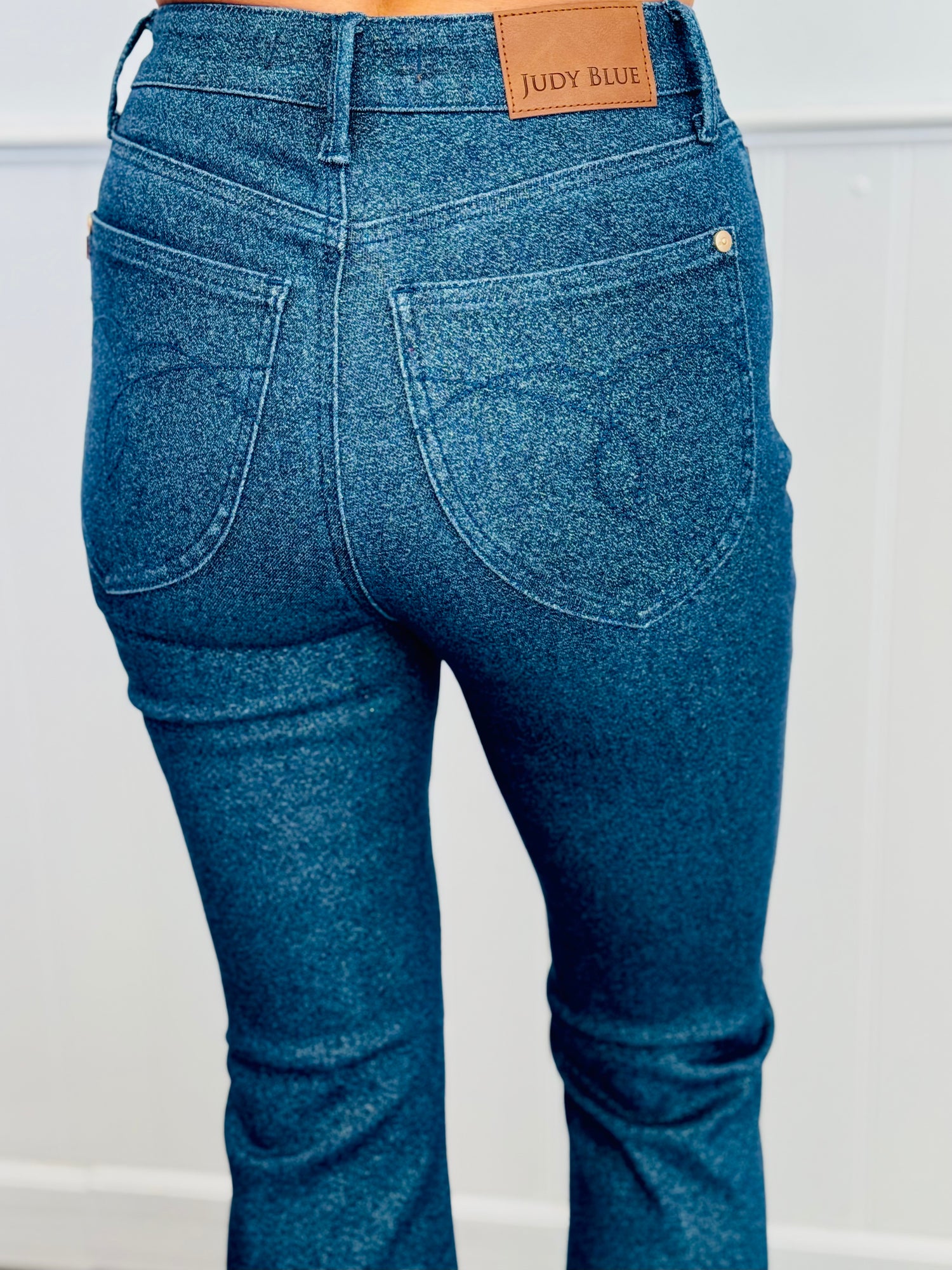 Bring some serious shine to your wardrobe with the Judy Blue Slay the Sparkle Flare Jeans. These high-waisted glitter denim jeans hug your curves while adding a flirty flare at the bottom. Perfect for turning heads at any event, they blend playful sparkle with comfortable stretch, making you feel fabulous all day (or night) long. Whether you’re dressing up or keeping it casual, these jeans add the perfect pop of glam to your everyday style. Step out and slay with sparkle flair!