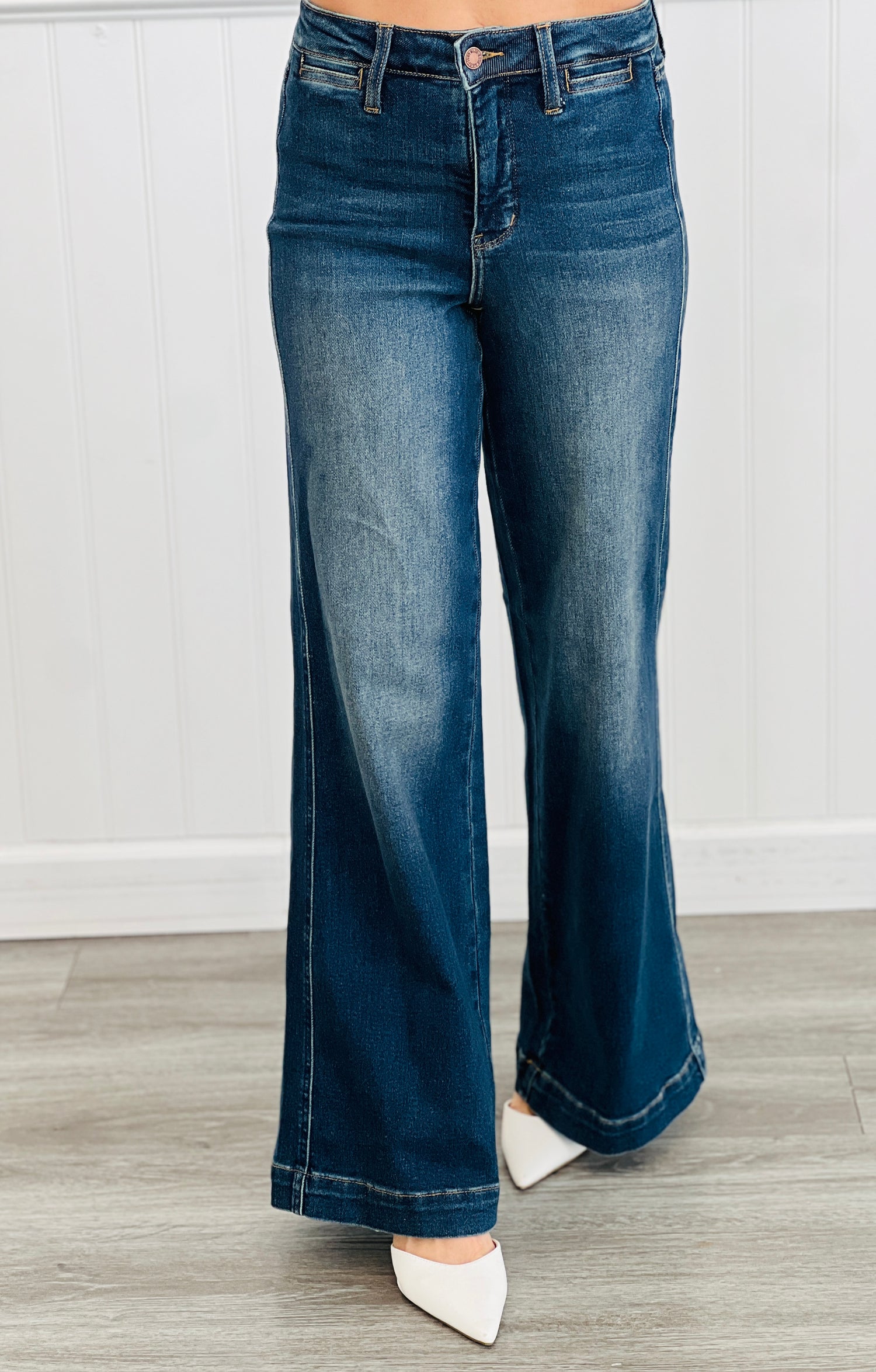 These Judy Blue jeans bring retro charm with a high waist and wide tummy control panel that flatters your silhouette. The dark wash pairs perfectly with the front welt pockets, adding a stylish touch to your everyday look. Designed for comfort and confidence, they’re your go-to for playful, vintage-inspired vibes in both regular and plus sizes.