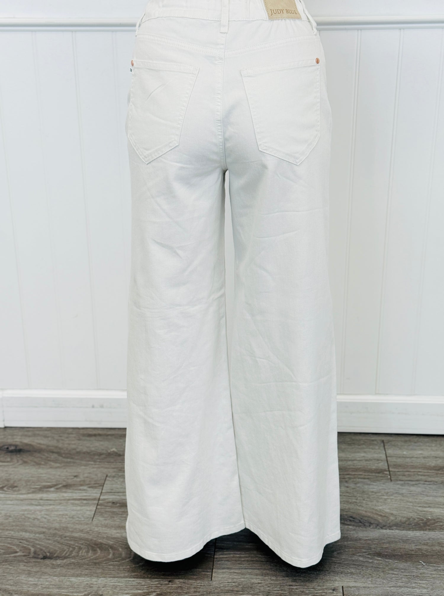 Judy Blue Summer House White Featherweight Palazzo Pants (Reg. and Plus)