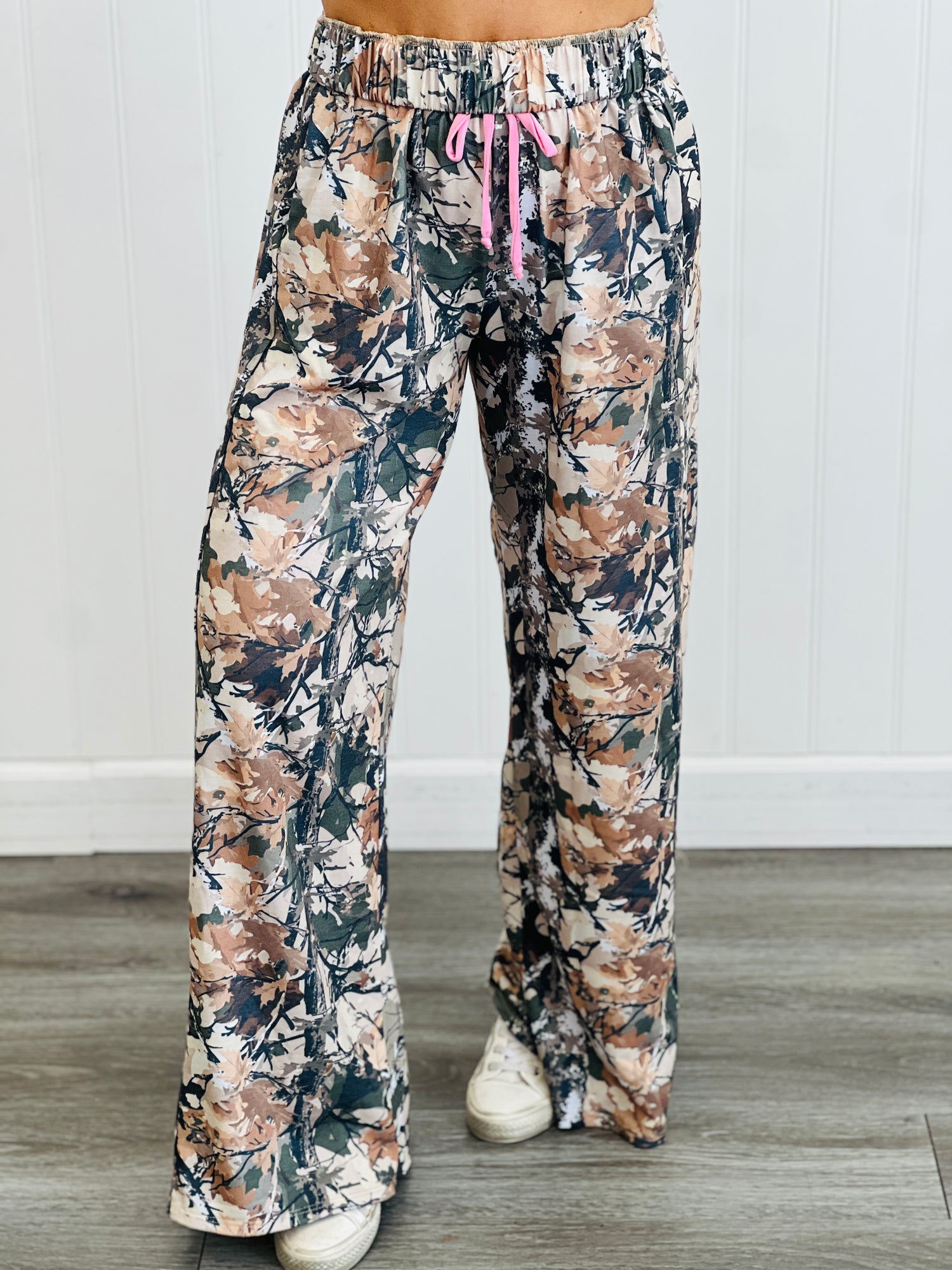 Khaki/Pink Camo Wide Leg Pants (Reg. and Plus)