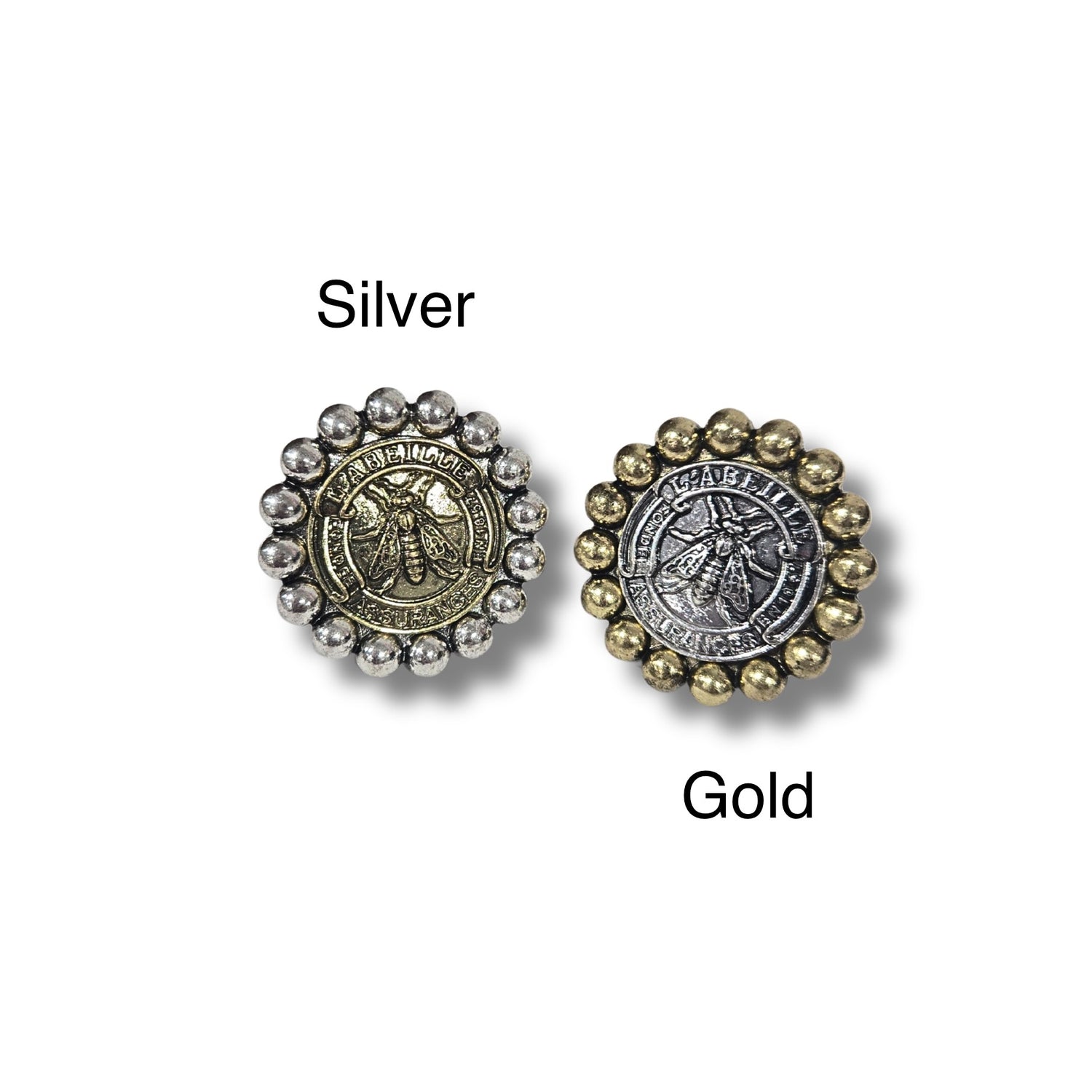 Add a touch of charm with the L'aBelle Statement Ring, featuring a stamped crest adorned with a delicate bee detail. The word "L'aBelle," meaning "beautiful," adds a sweet, playful vibe to your look. Available in two colors, this ring is perfect for those who love unique, meaningful accessories that buzz with personality.