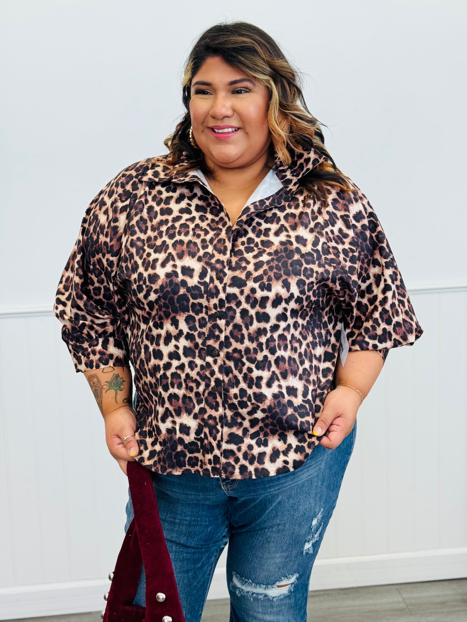 Add the spirit of adventure to your wardrobe with this super cute button-up leopard print shirt. Features include a collared neckline, long full sleeves, rounded hem and yoke back. Perfect for a trendy look, this shirt is guaranteed to turn heads!