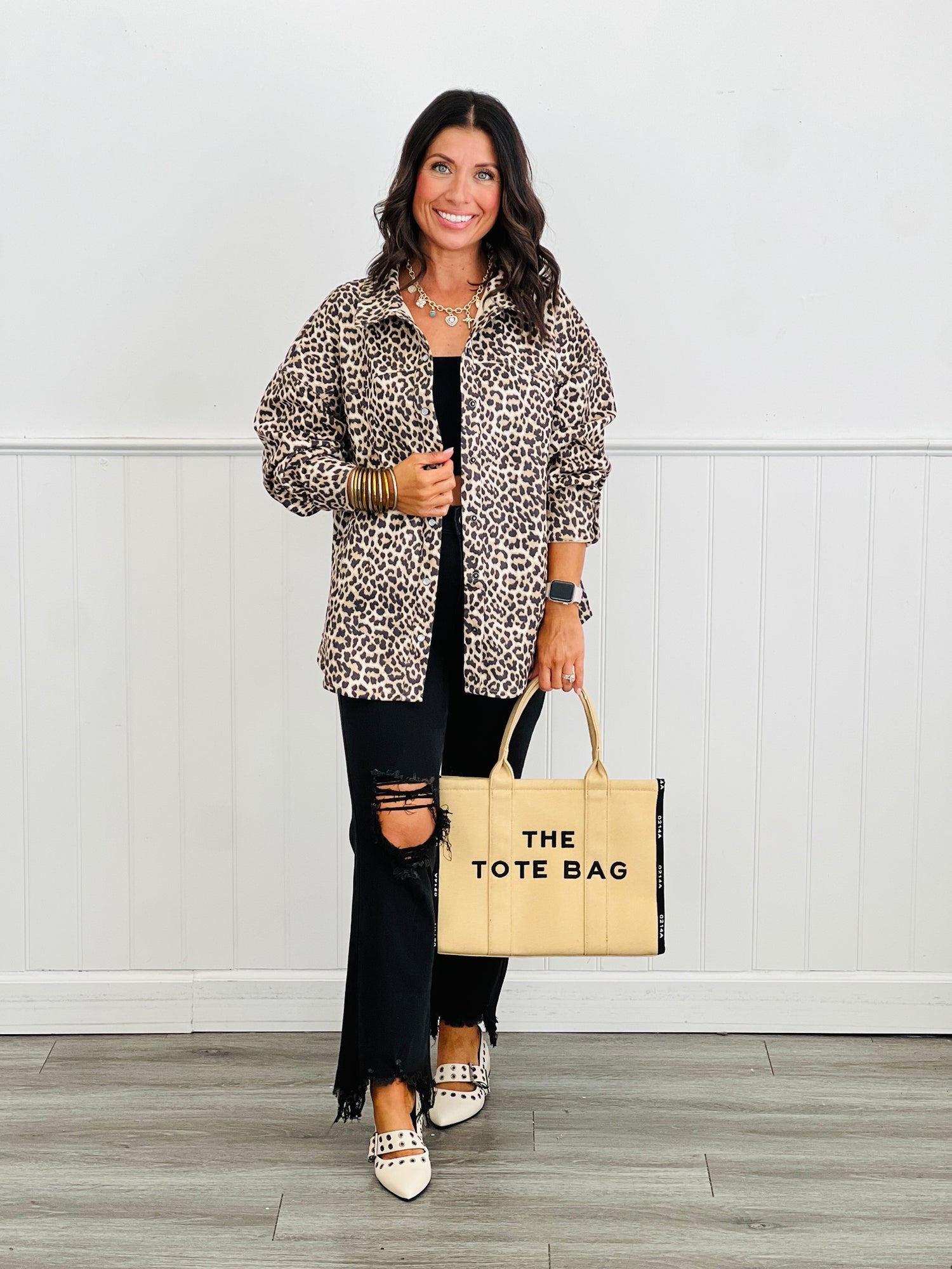 Introducing our super cute and versatile Leopard Print Long Sleeve Shirt! Featuring a collared neck, long sleeves with buttoned cuffs front button-down closure and leopard print pattern. Relaxed fit silhouette. Perfect worn buttoned as blouse or layered as an overshirt.