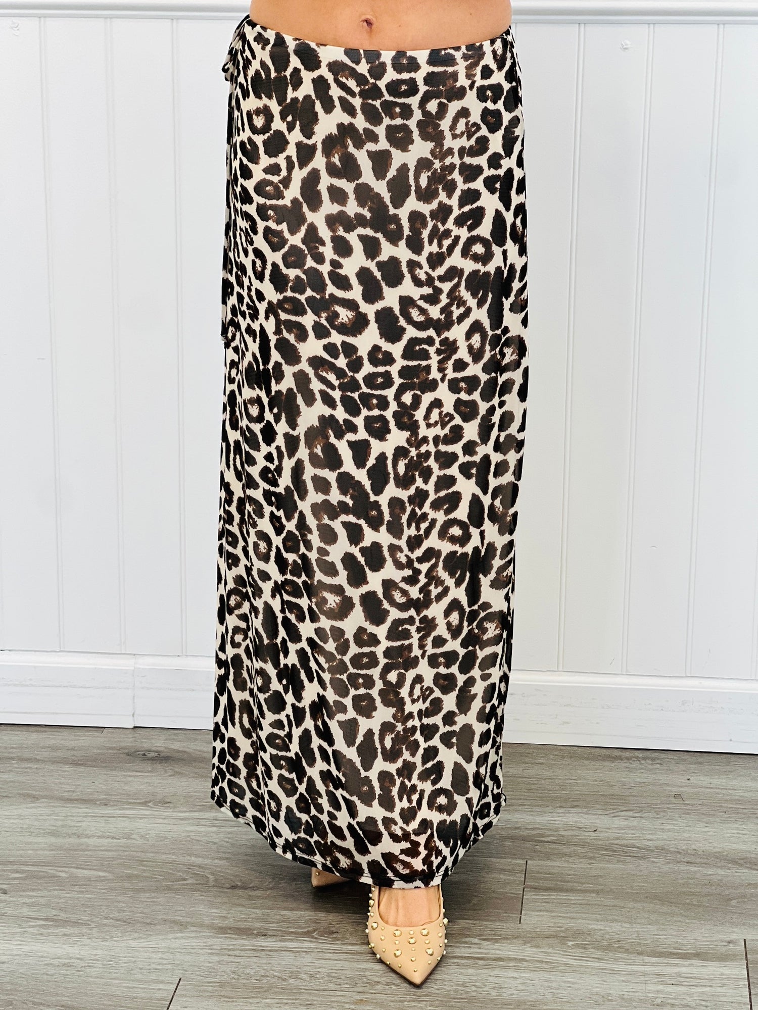Leopard Side Tie Flare Hem Maxi Skirt (Reg.)