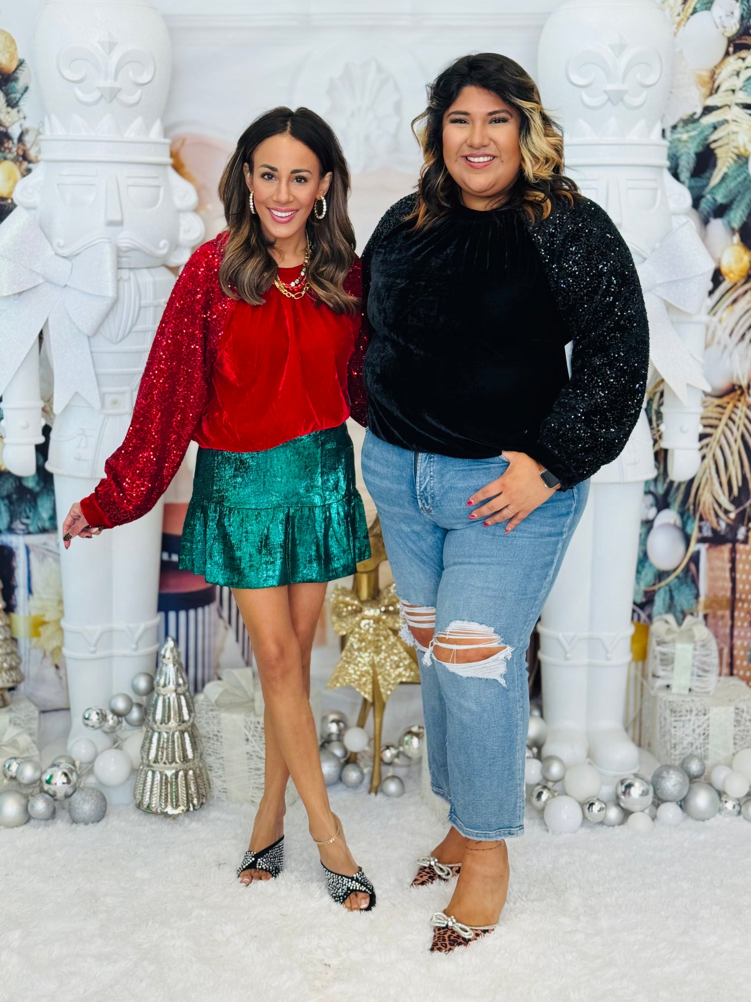 Luxe Velvet Sequin Sleeves Blouse (Reg & Plus)-2 Colors