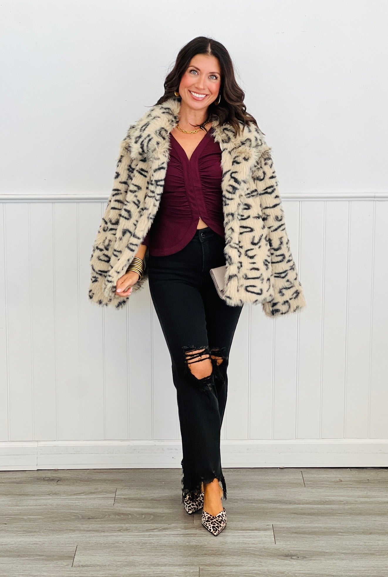 Introducing our figure hugging Maroon Fitted Hook & Eye Front Blouse! Featuring long fitted sleeves, a deep v-neck and split hemline, this blouse is sure to be a make a statement.
