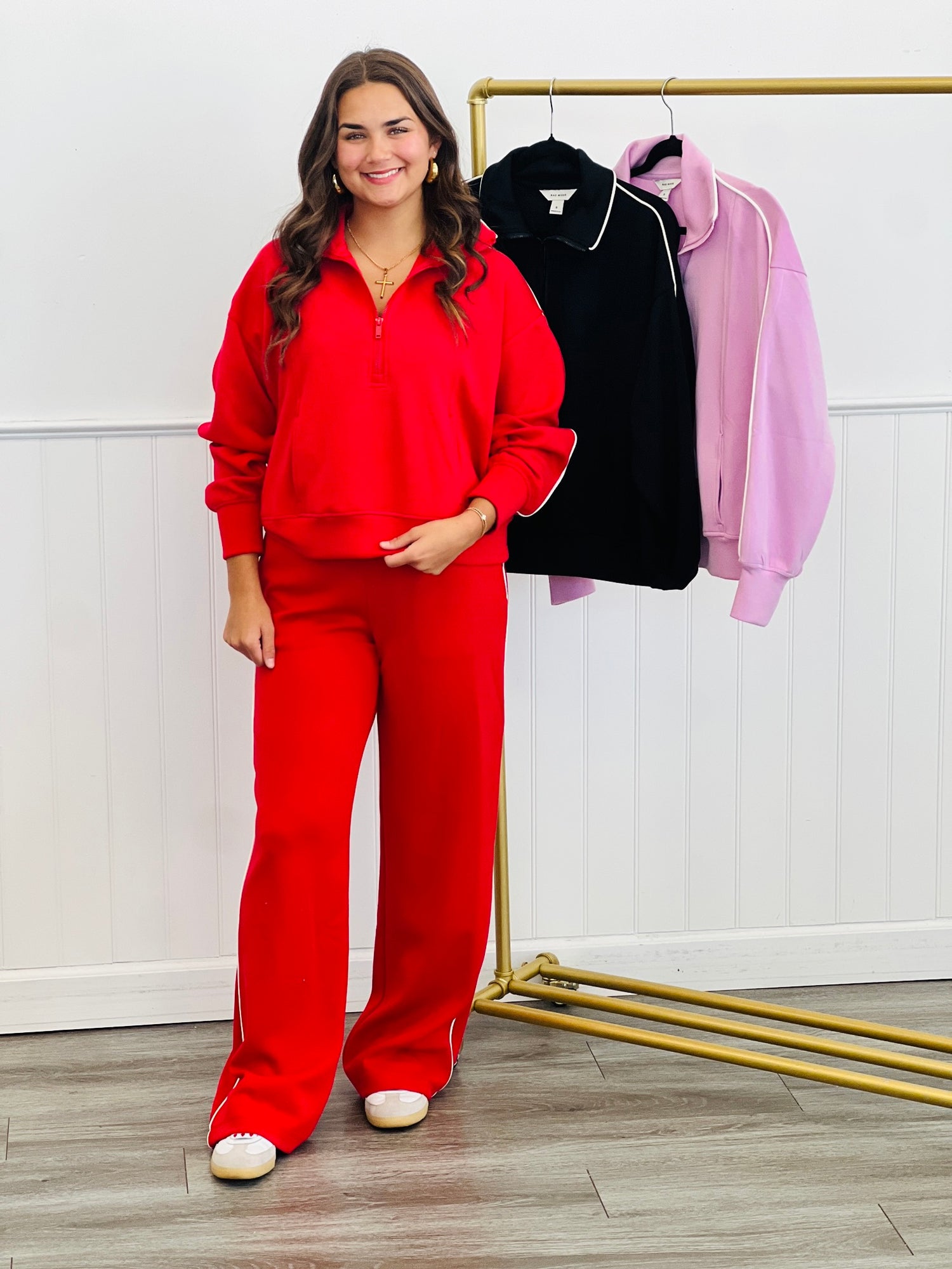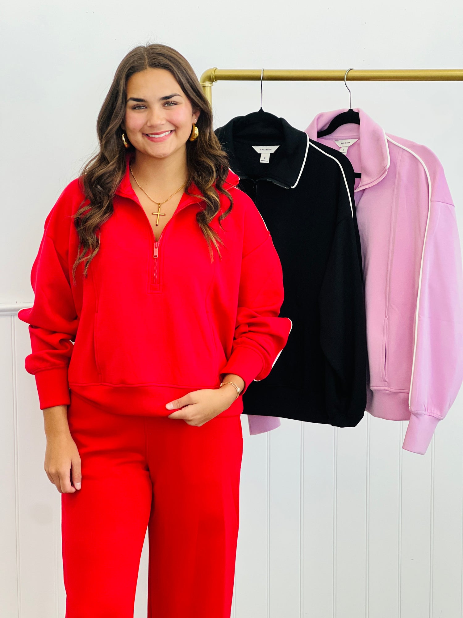 Modal Side Piping Half Zip Top (Reg. and Plus)-3 Colors