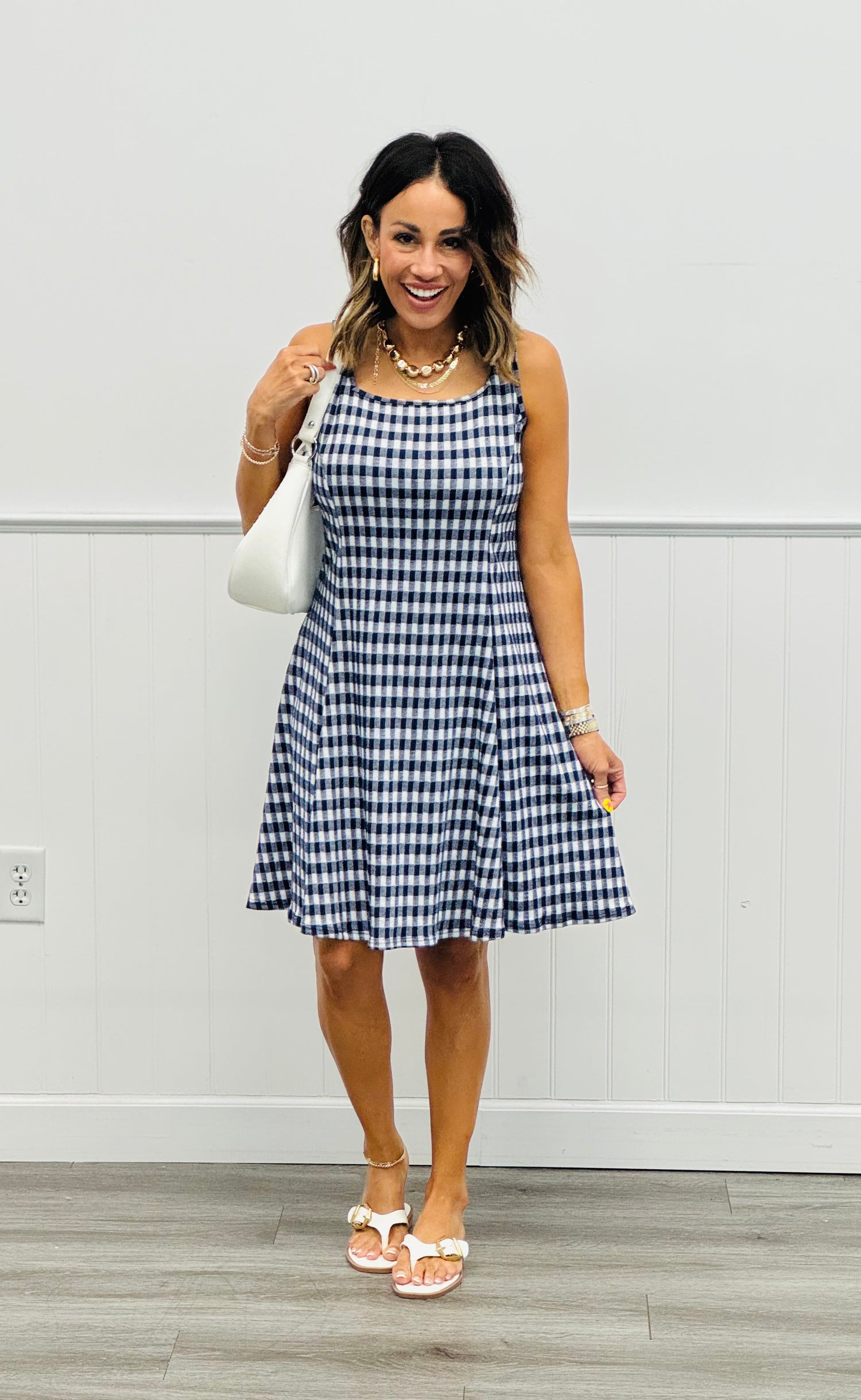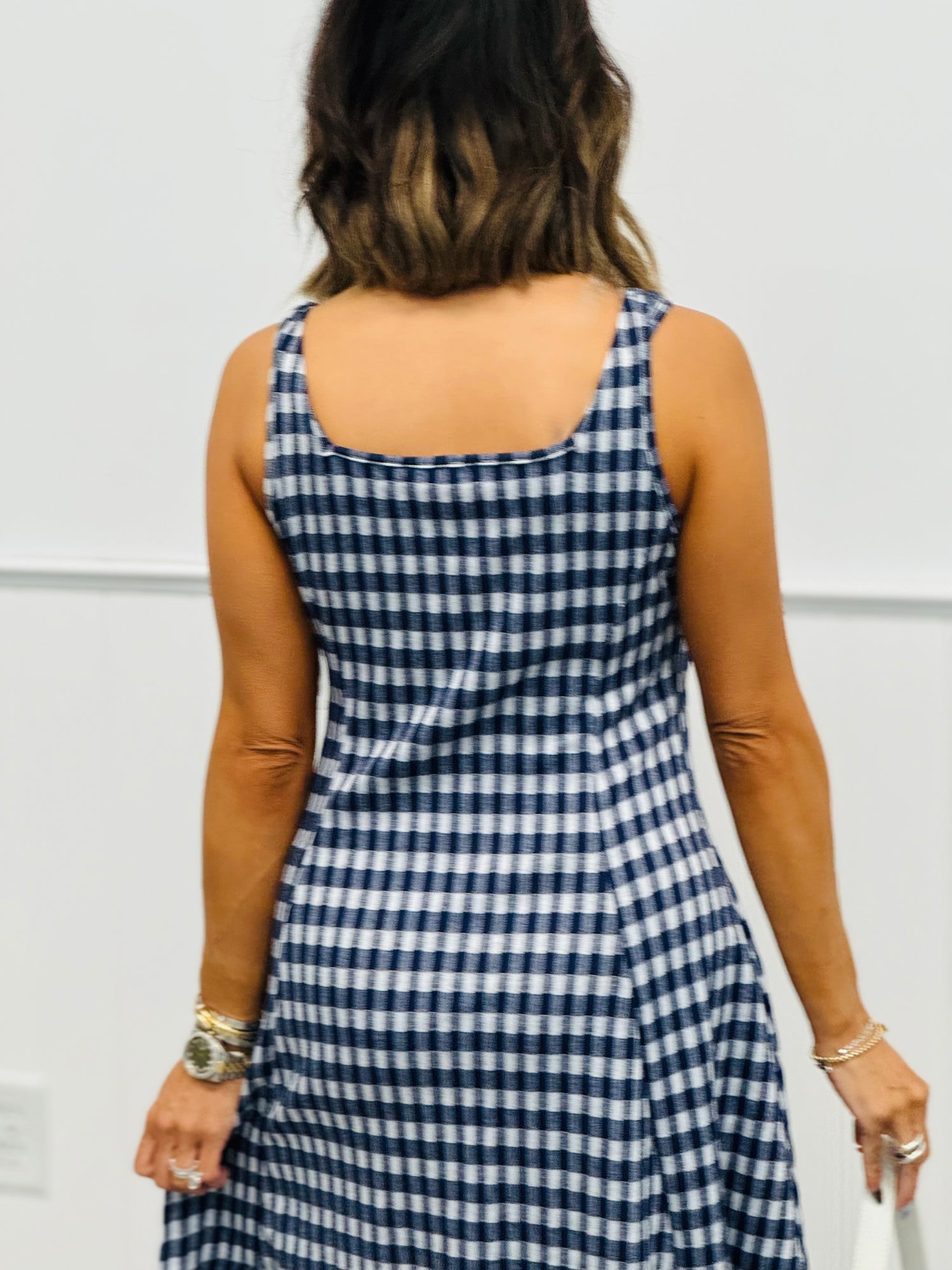 Navy/White Gingham Sleeveless Mini Dress (Reg.)