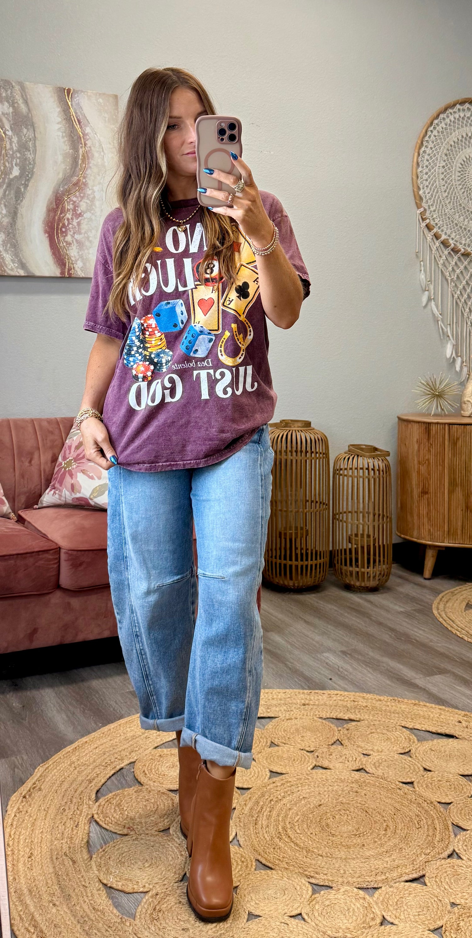 Embrace a laid-back vibe with this oversized "No Luck Just God" graphic tee. Crafted from soft, garment-dyed, mineral-washed cotton, it offers a vintage feel that’s perfect for effortless style and comfort. Make a bold statement without saying a word!