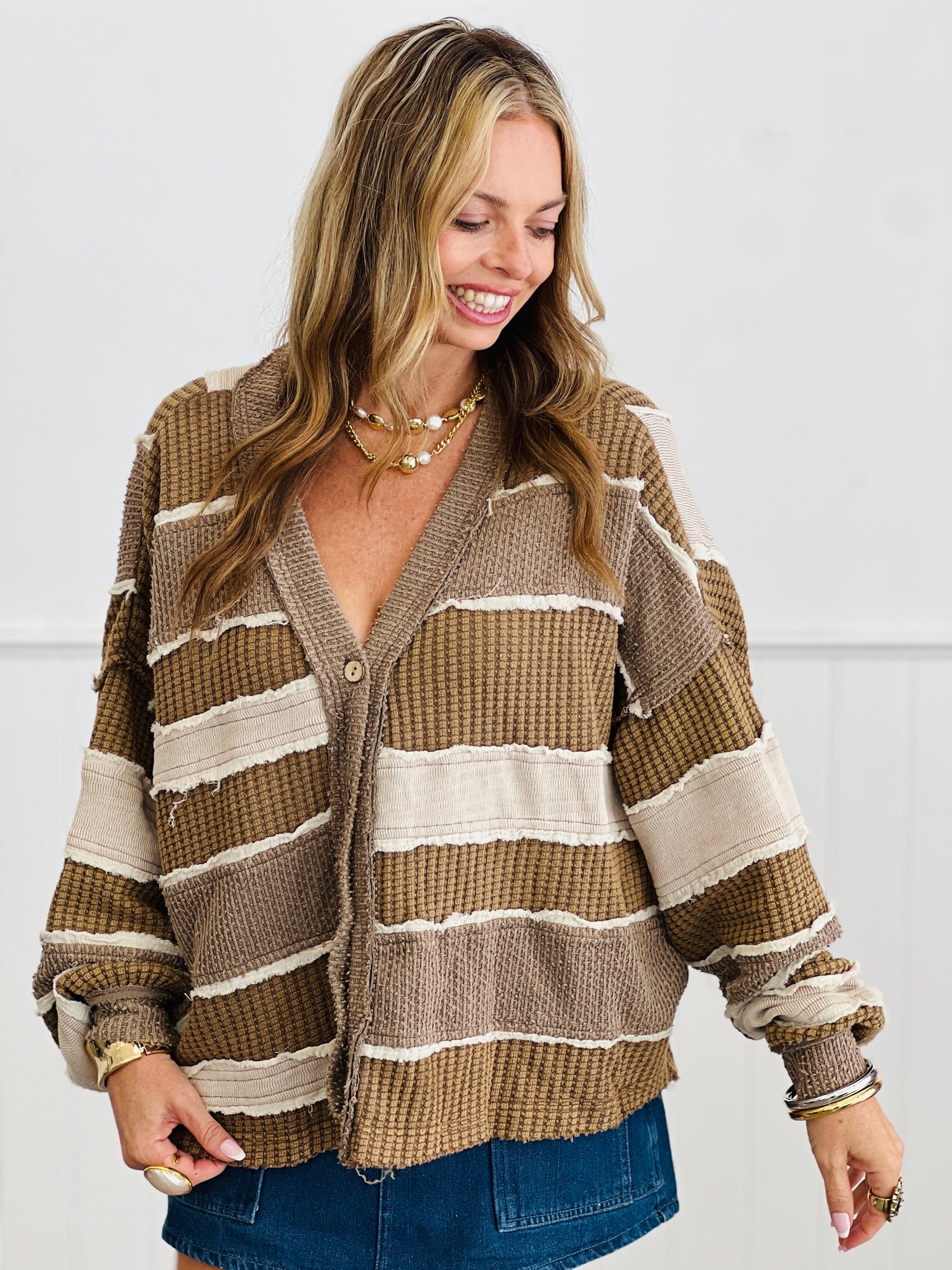 Oli & Hali Brown Combo Color Block Patchwork Cardigan (Reg.)