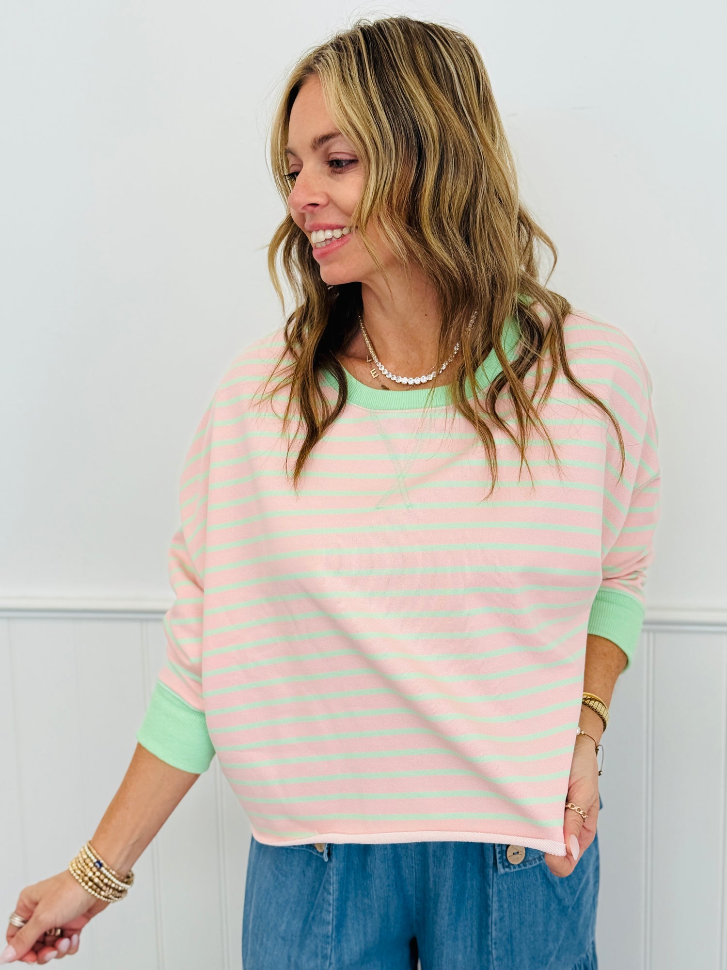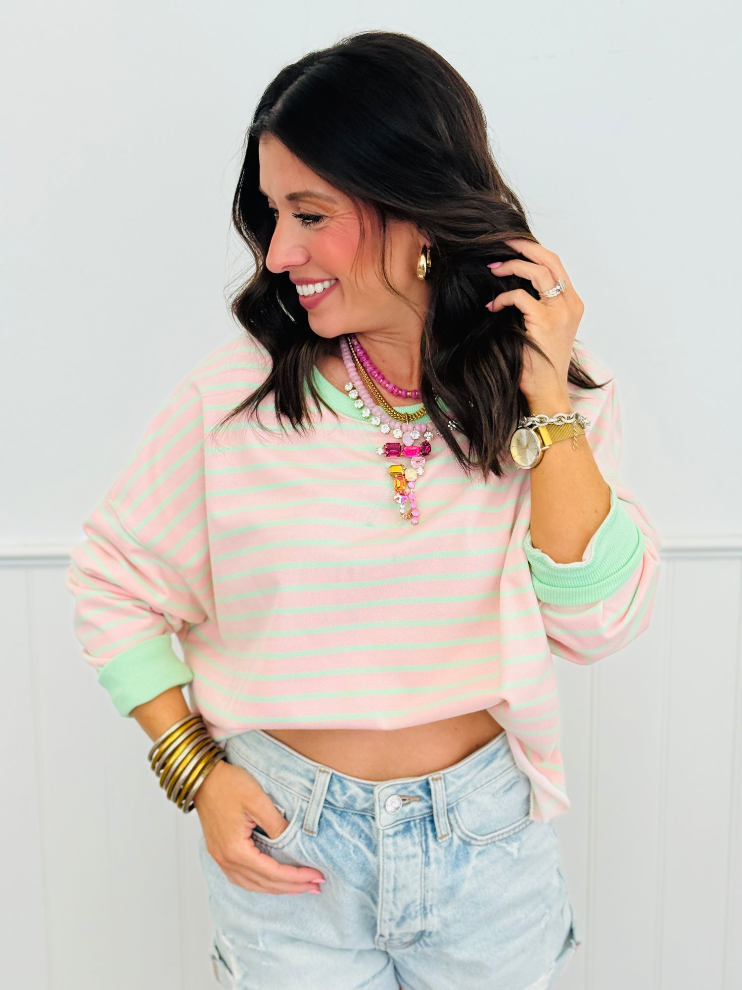 Pink/Mint Striped Boxy Sweatshirt (Reg.)