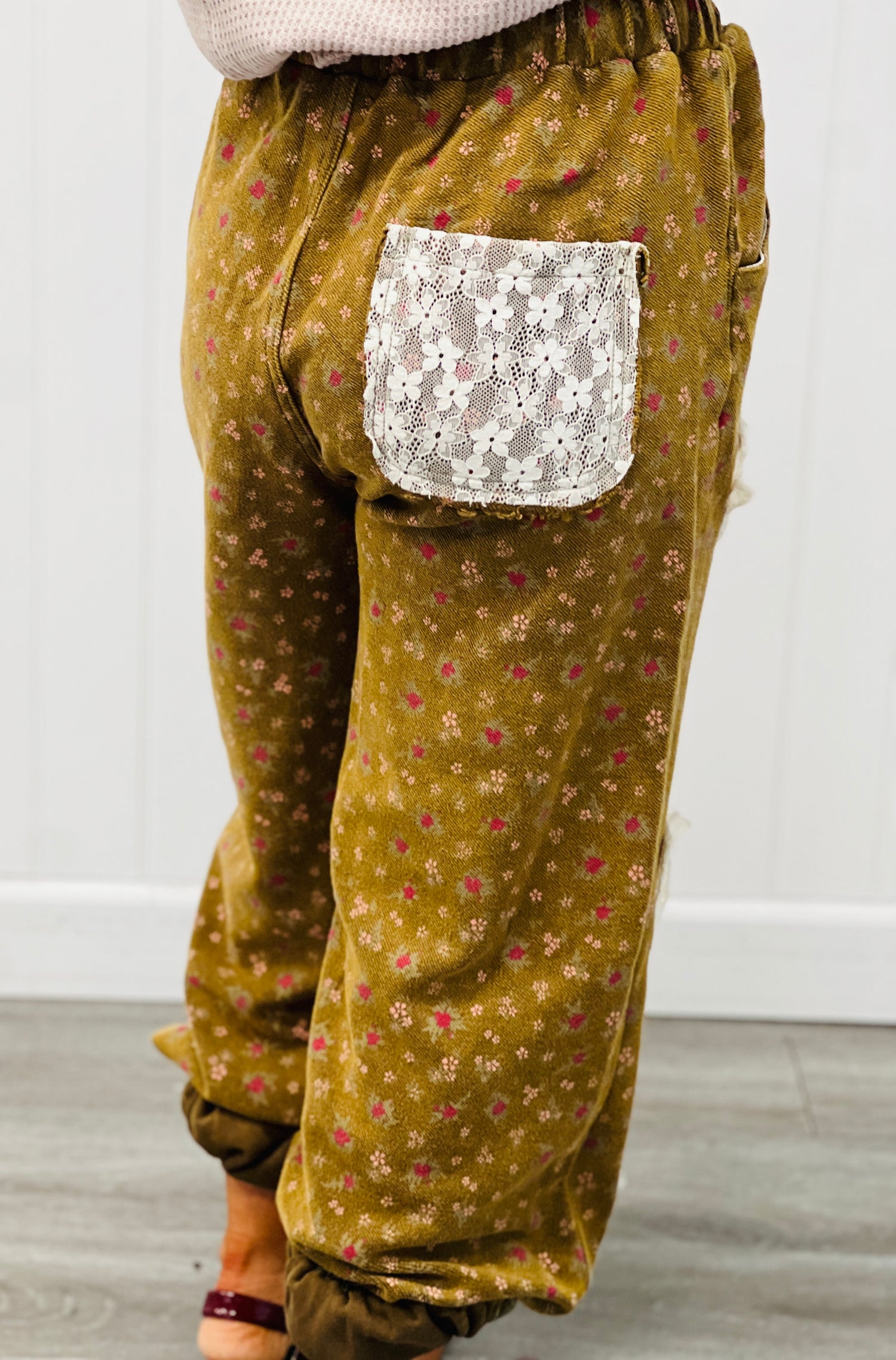 POL Floral Contrast Lace & Woven Patch Pants (Reg.)