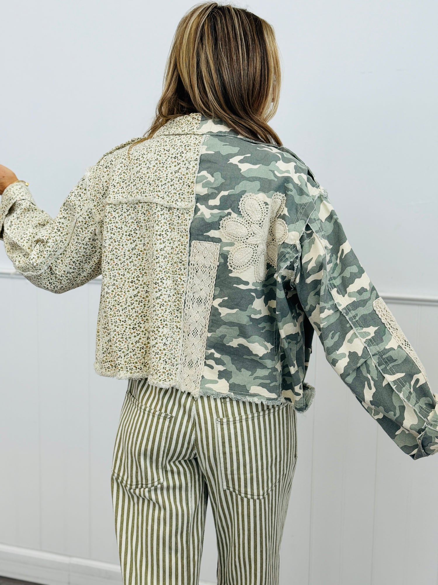 Introducing the super cute and quirky POL Cream Multi Mixed Print Jacket! This fabulous jacket features a collared neckline, long sleeves, dropped shoulders, buttoned flap chest pocket plus a front zipper closure and relaxed fit with patch detail pointed camo and ditsy dot patterns.