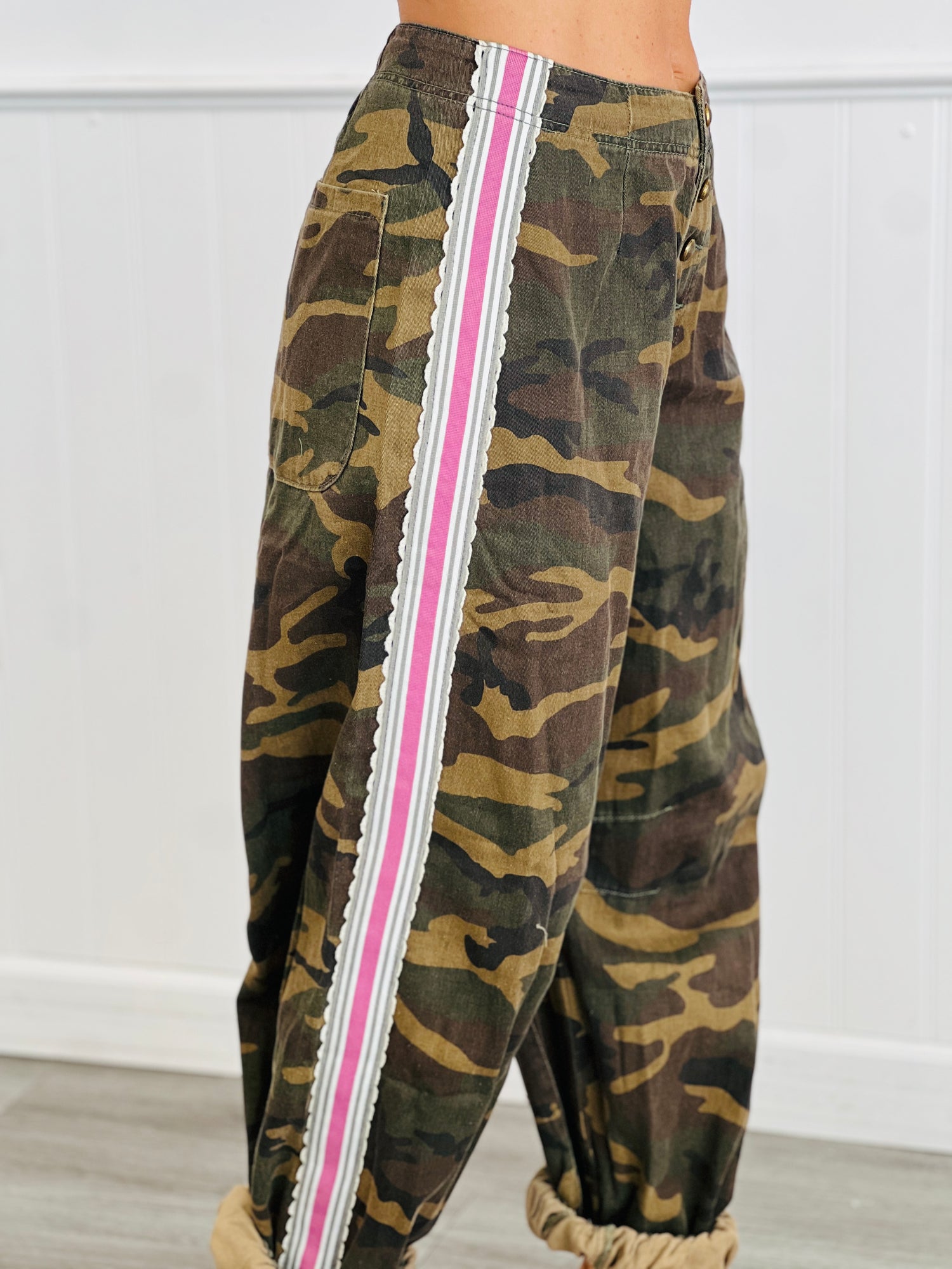 Step into effortless style with the POL Olive Camo Pants. These relaxed-fit twill pants feature a playful side tape detail that adds a modern twist to classic camo. Whether you're lounging or stepping out, their comfortable fit and cool design make them your new go-to for casual days with a bit of edge.