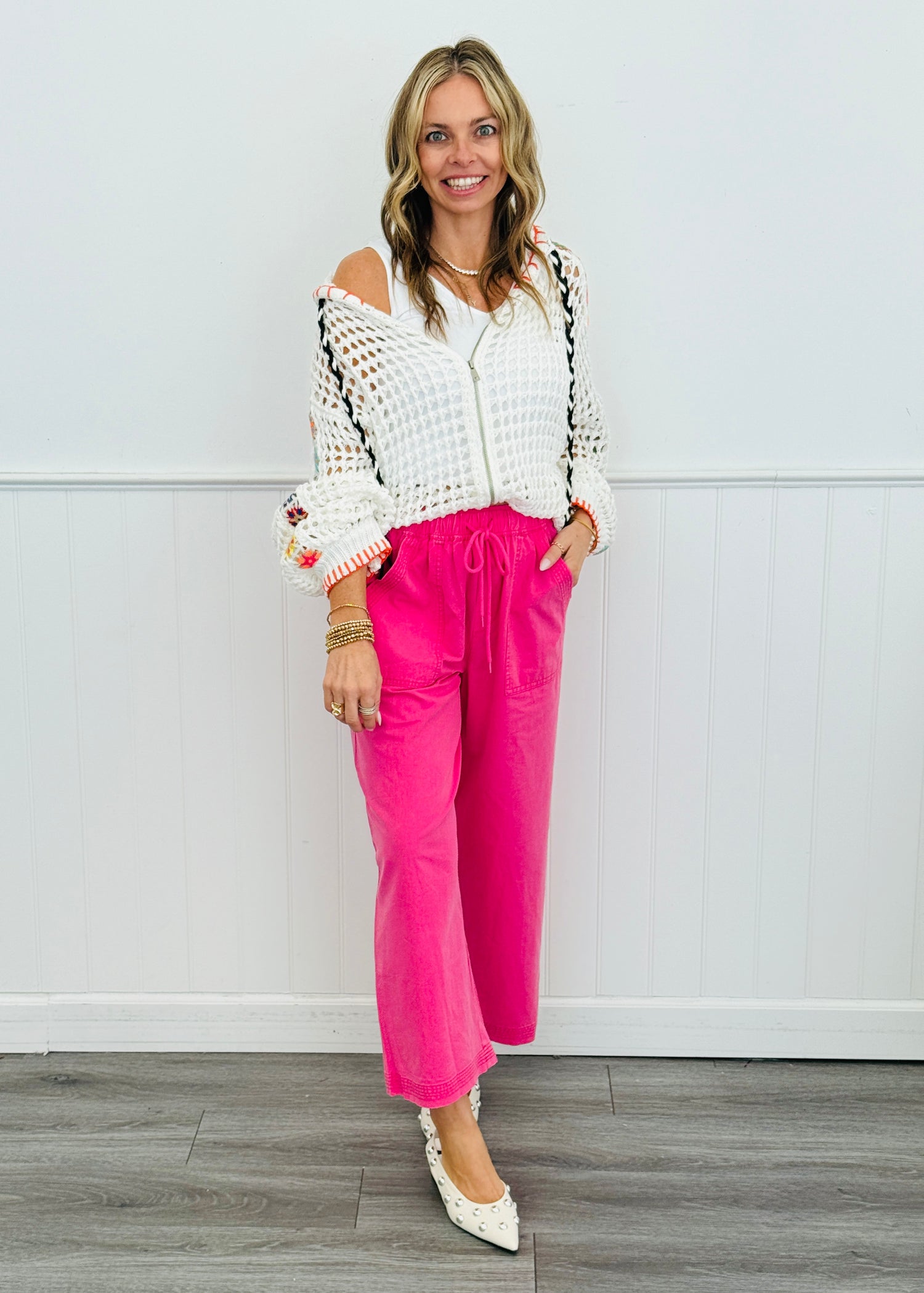 POL Open Weave Zip It Hoodie Cardi Top (Reg.)-3 Colors